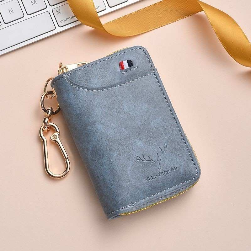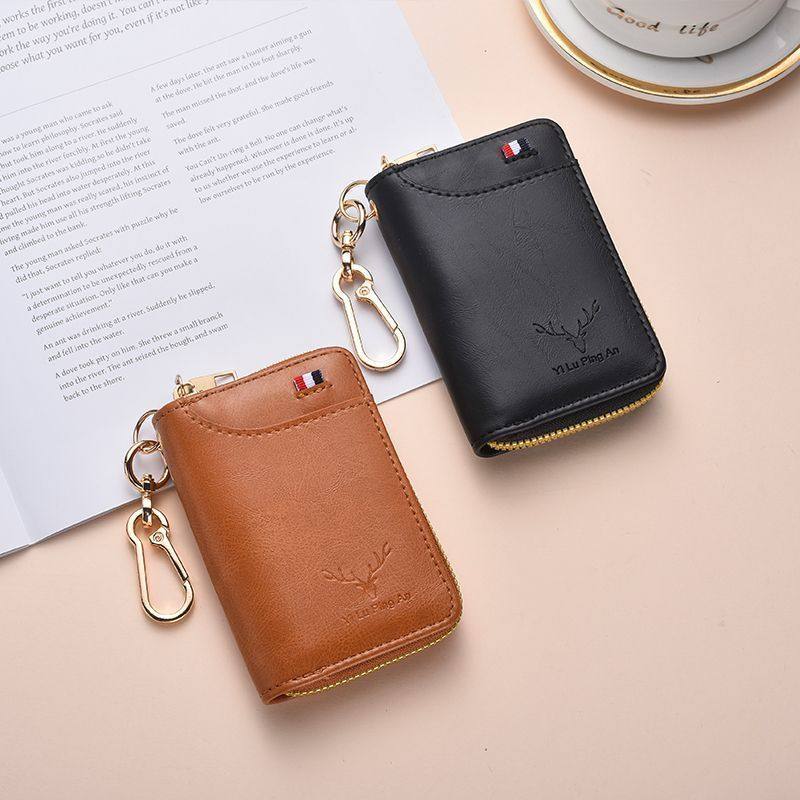 【一鹿平安】新款钥匙包大容量真皮质感多功能汽车拉链通用收纳包