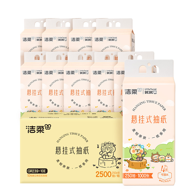 洁柔悬挂式抽纸卫生纸巾家用实惠装整箱4层250抽10提餐巾纸面巾纸
