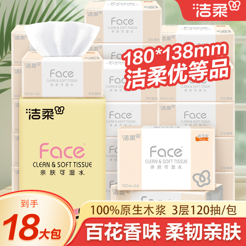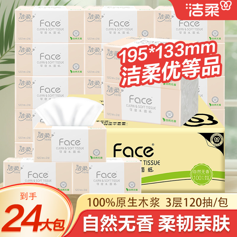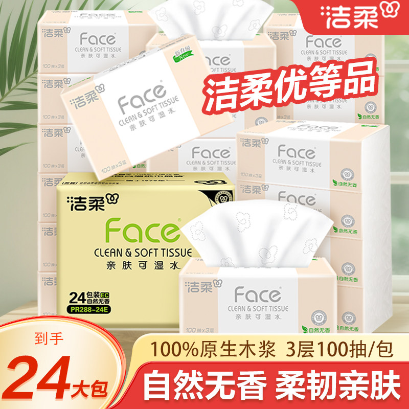 洁柔纸巾抽纸家用实惠装卫生餐巾纸face可湿水面整箱香味木浆原生