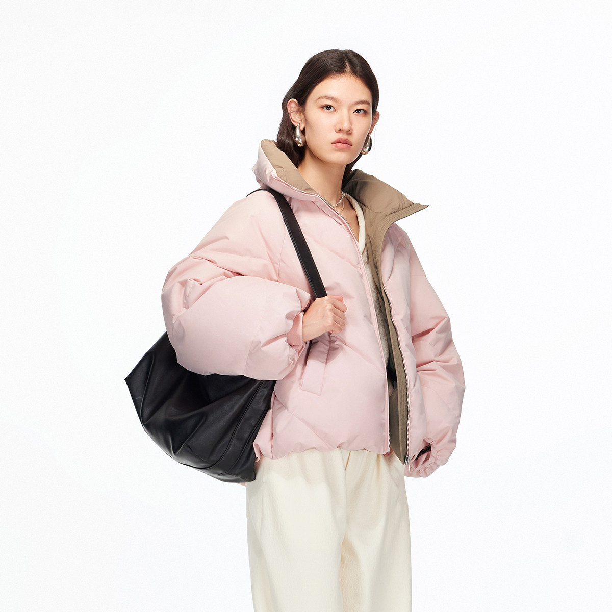 【鞠婧祎同款】鸭鸭2025年冬新款百搭短款女士纯色立领羽绒服外套