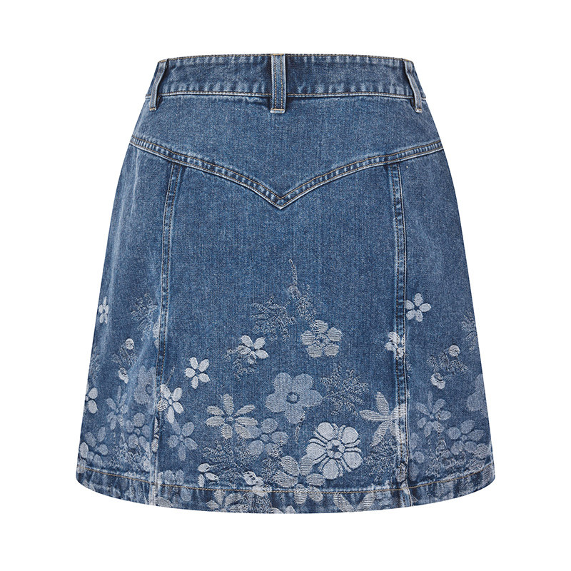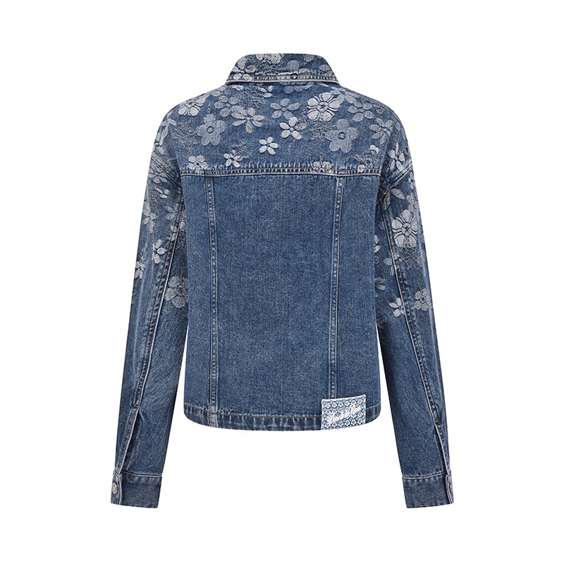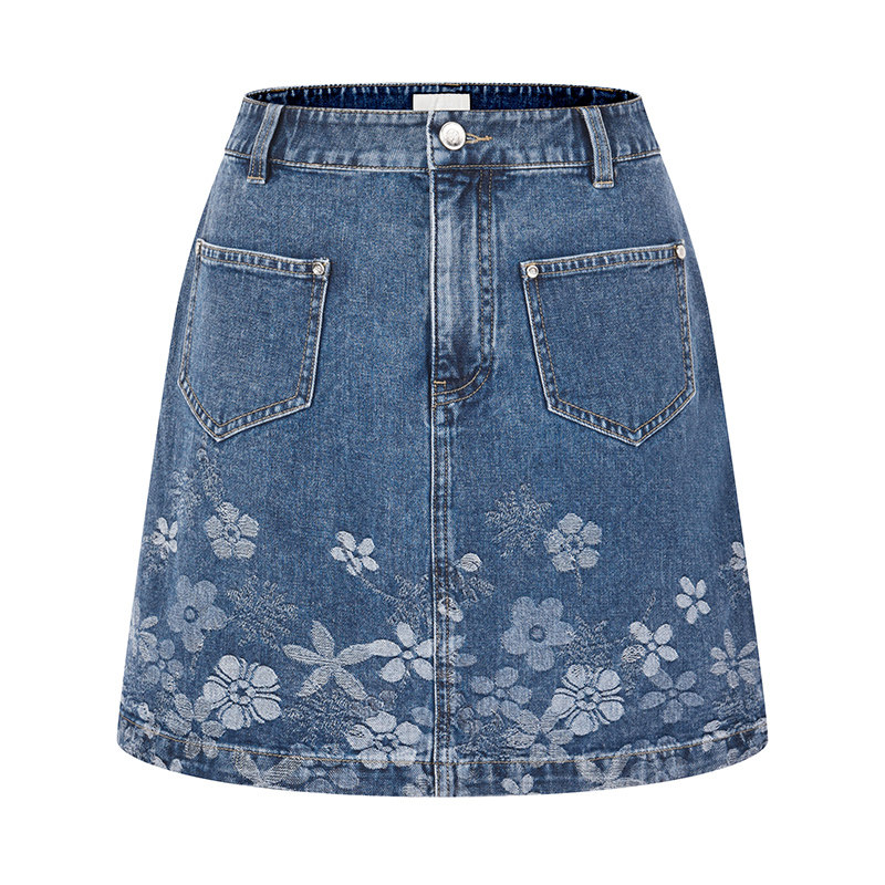 RARE威雅女装2026夏季新款花朵提花蓝色牛仔夹克短裙时尚牛仔套装