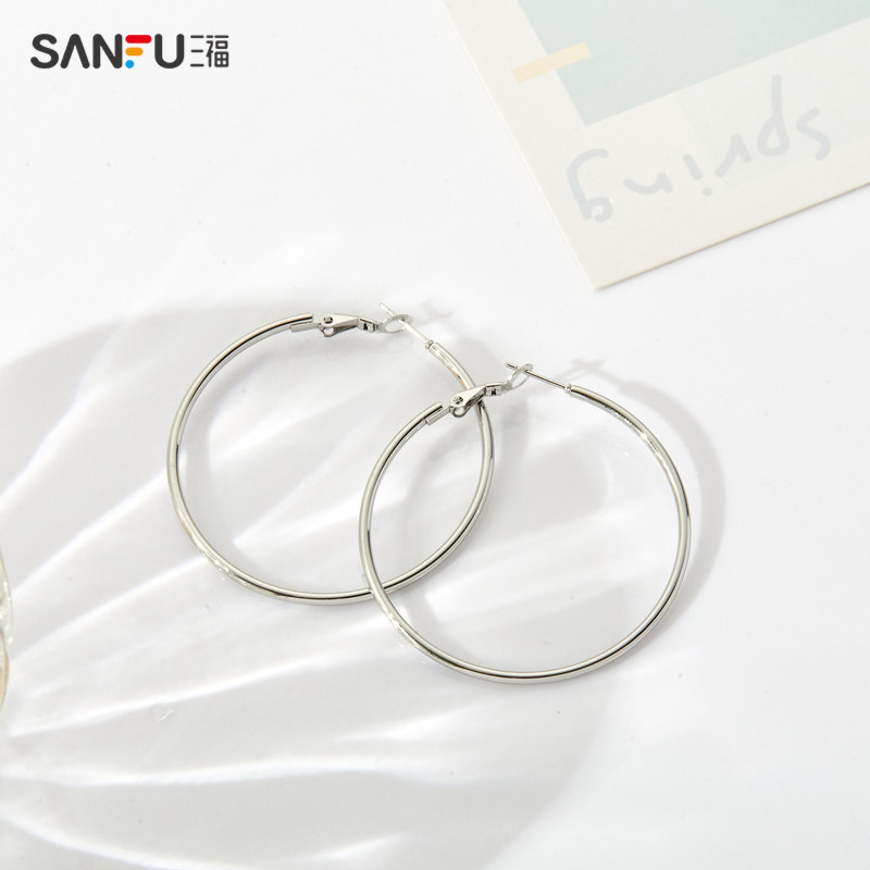 三福素圈耳环圈圈大耳圈饰品耳饰女圆圈秋冬金属休闲大气轻奢百搭