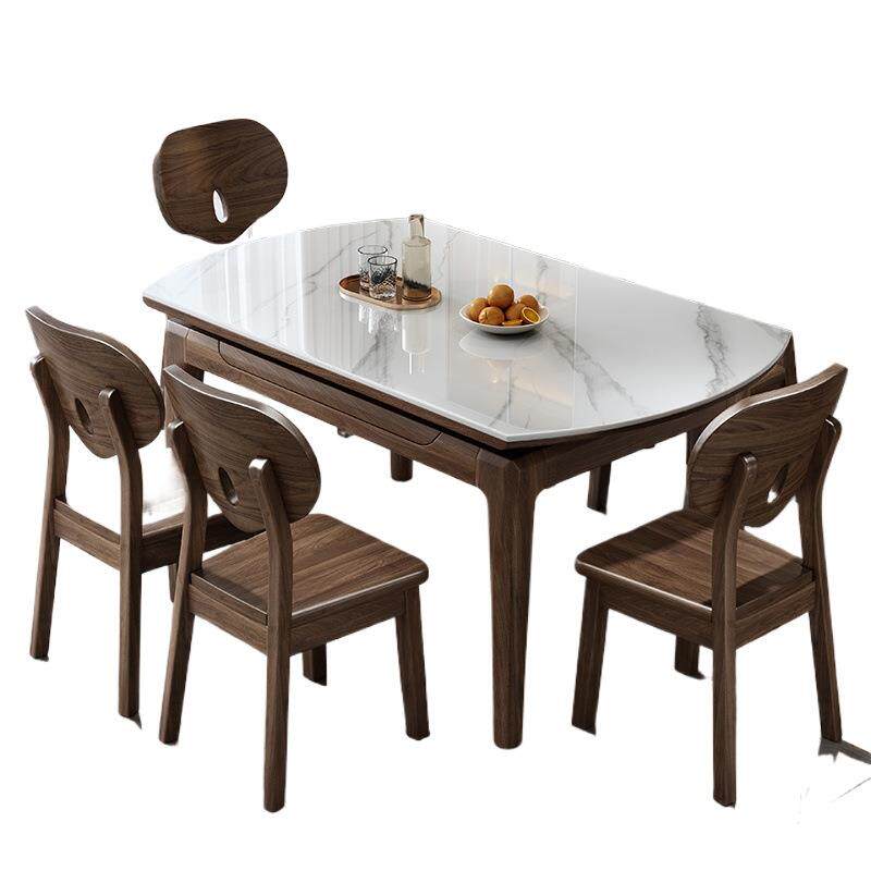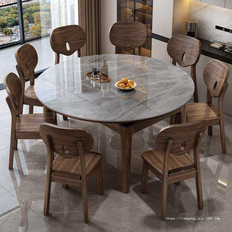 北欧岩板实木餐桌组合小户型电磁炉伸缩折叠现代简约家用吃饭桌子