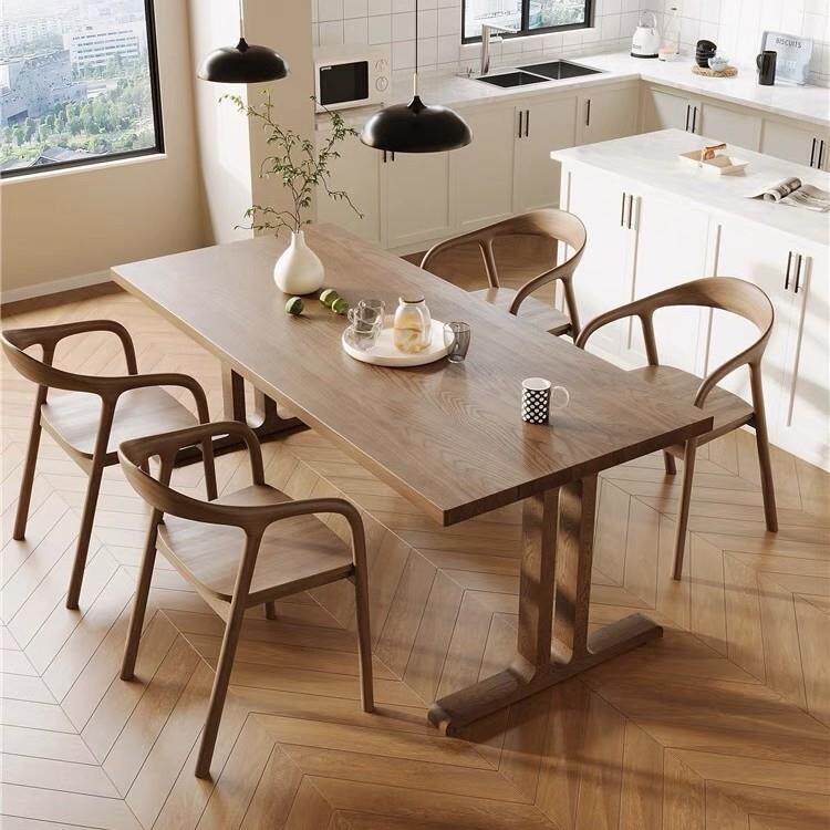 实木餐桌椅组合北欧胡胡桃色办公室书桌简约会议桌家用餐厅饭桌子