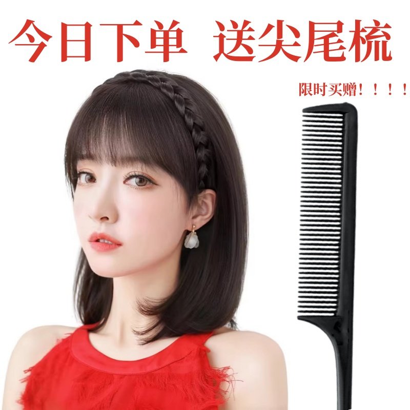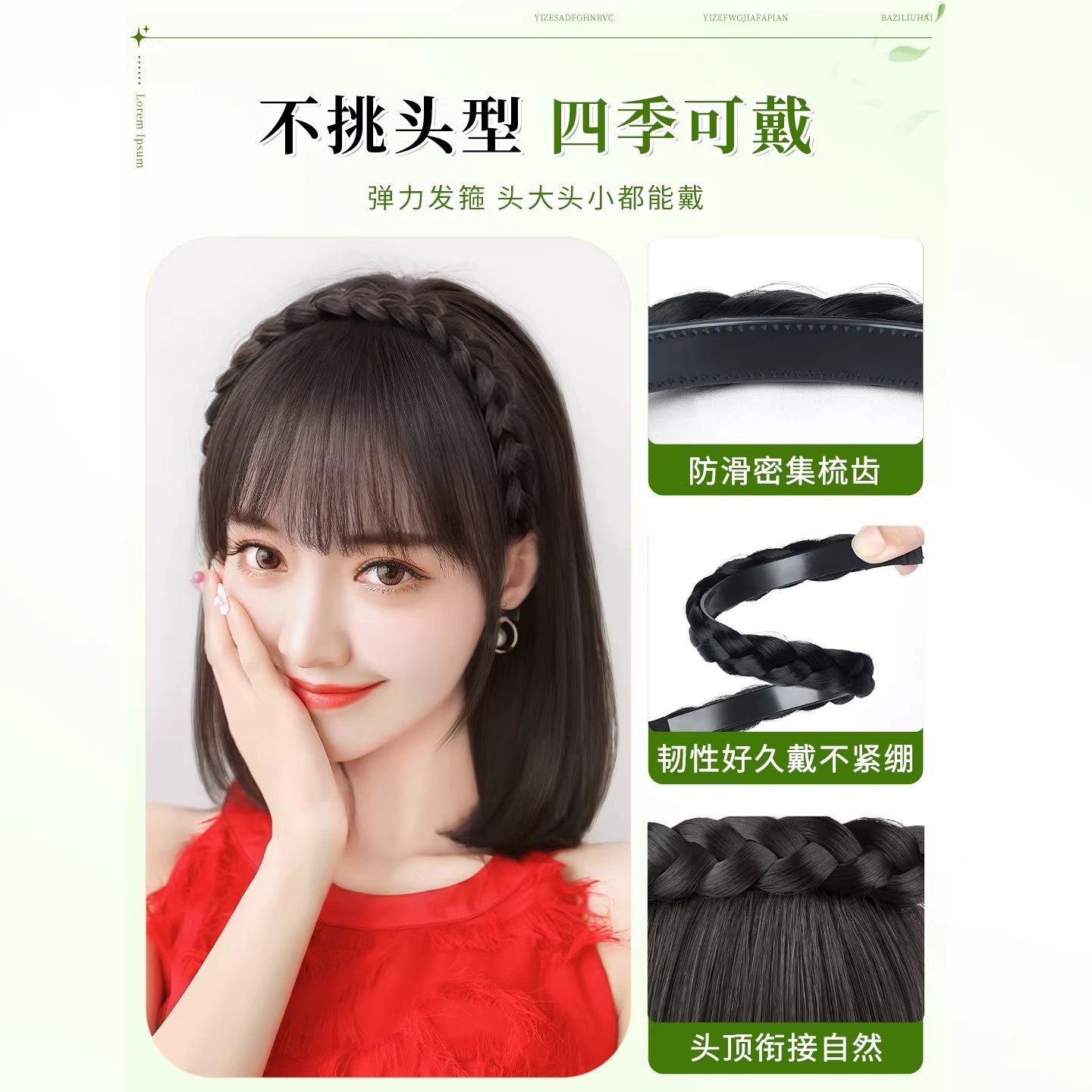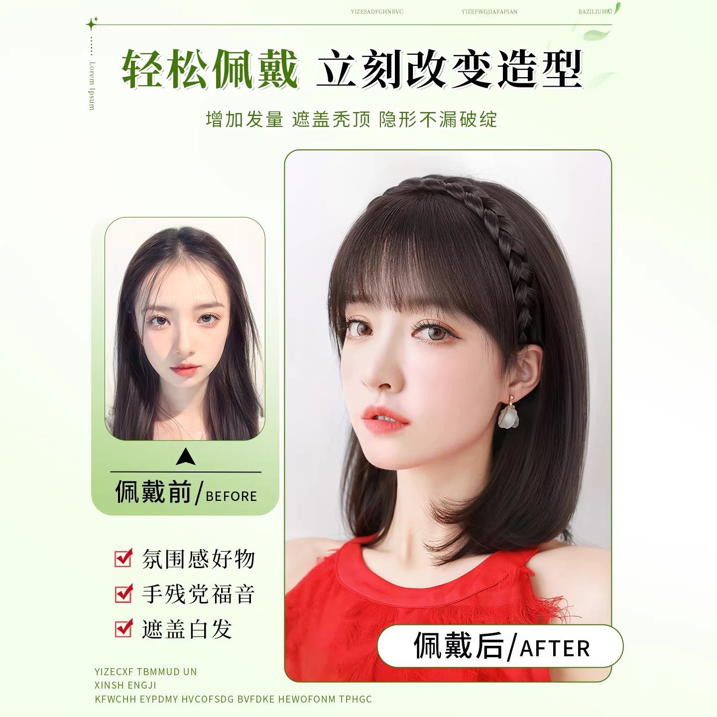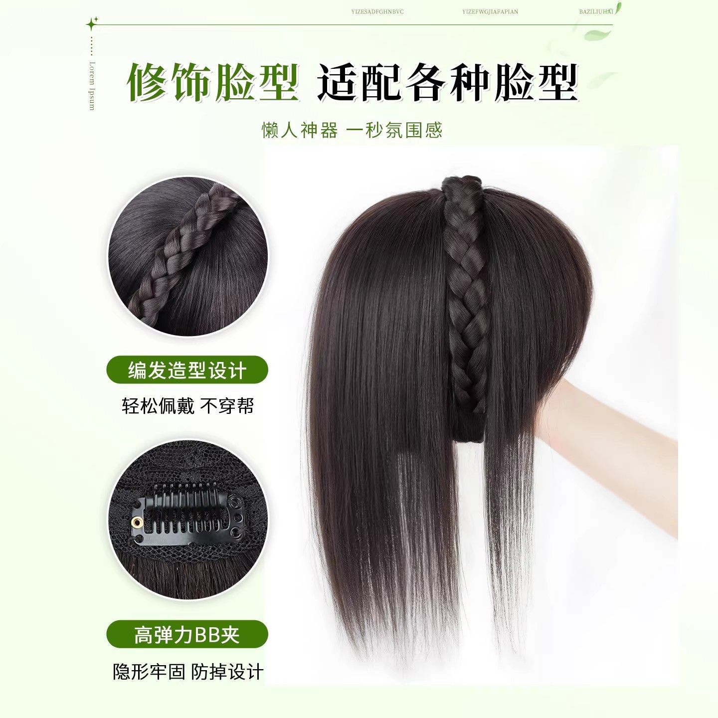 刘海假发女片一体式麻花鱼骨辫发箍头顶真发遮白发自然前额补发片