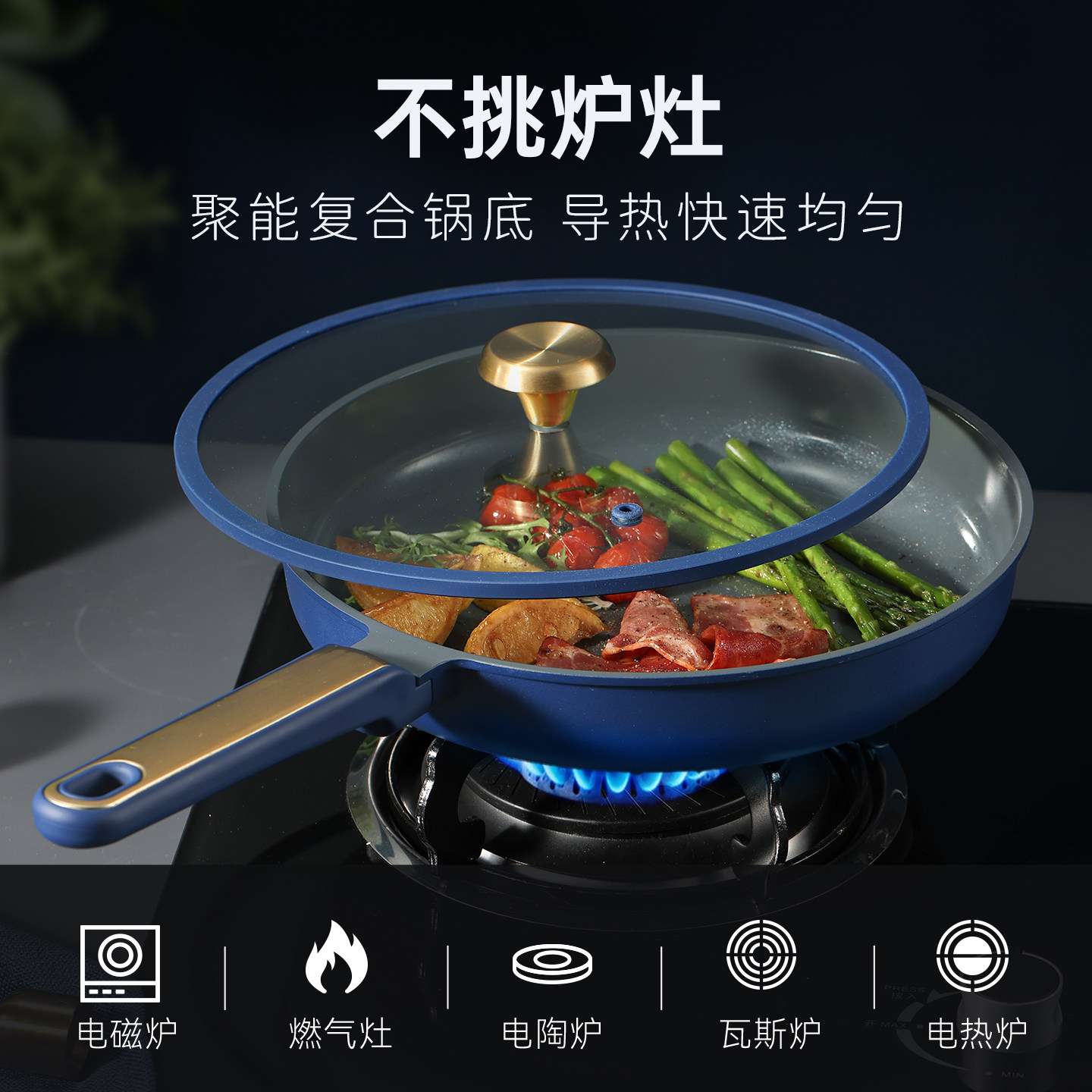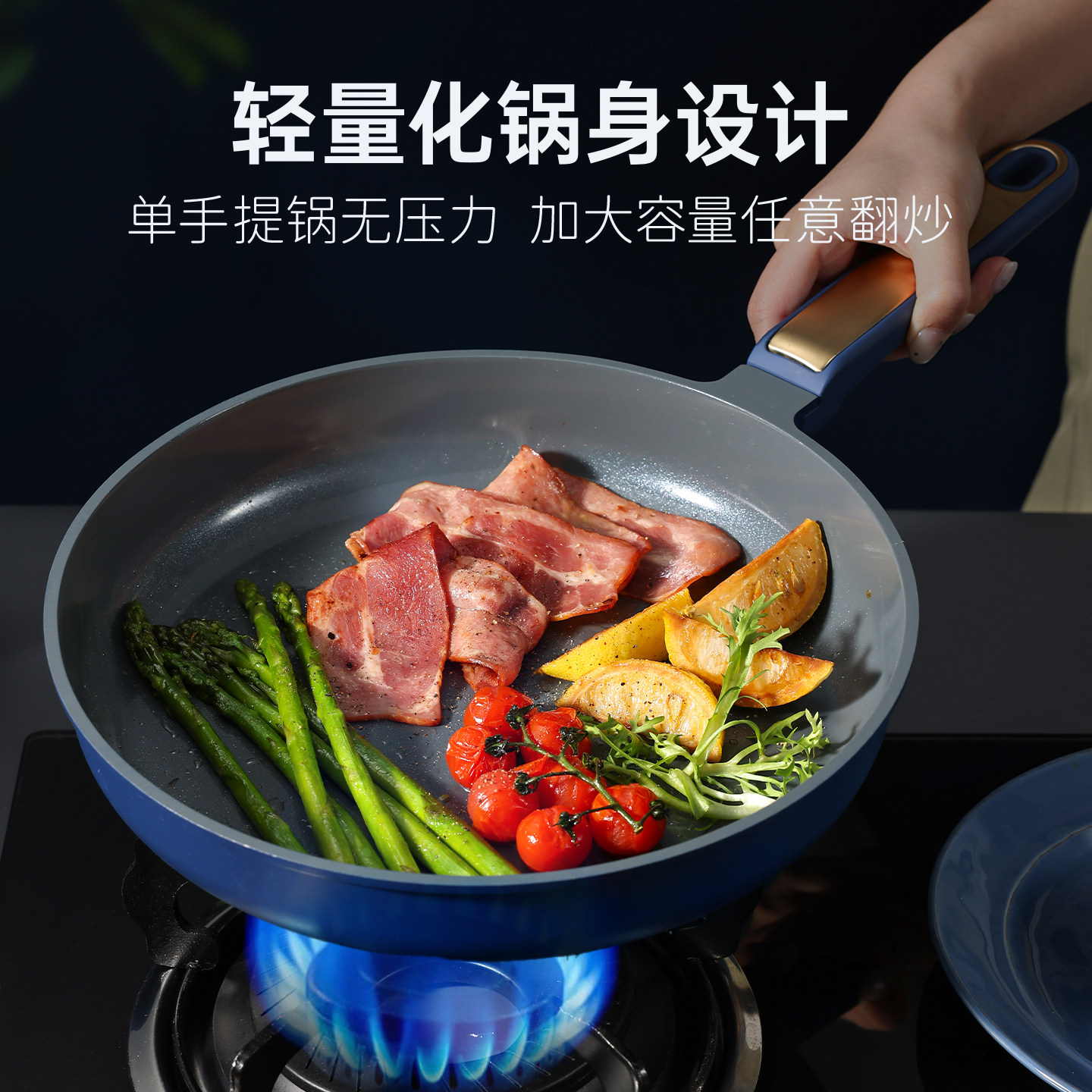 钛红芯控温平底锅不粘锅家用无涂层炒菜煎蛋牛排电磁炉专用深煎锅