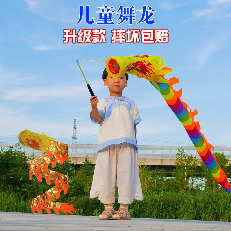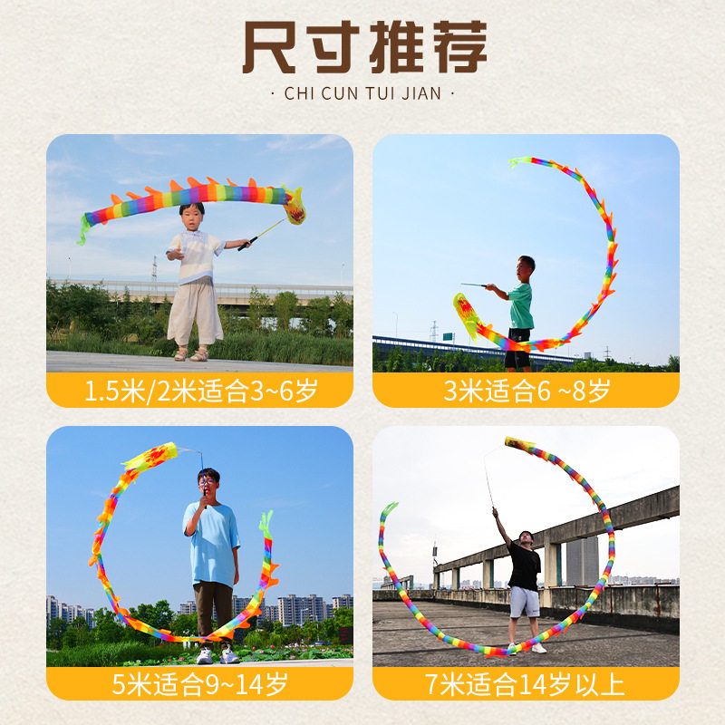 甩广场表演空竹杆甩道具健身龙甩彩带彩带舞龙儿童舞龙耍龙初学
