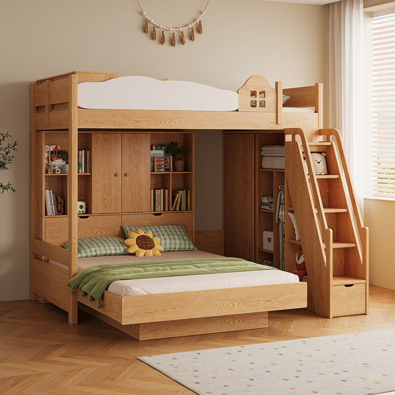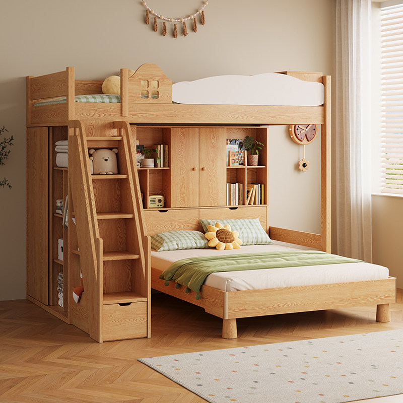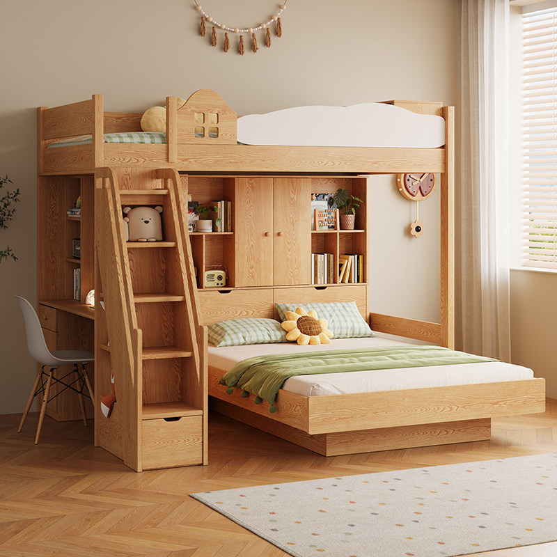 全实木子母床上下铺双层床高低床多功能组合儿童床上下床两层木床