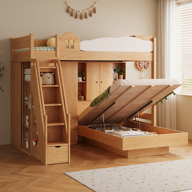 实木床橡木多功能上下床双层床儿童床子母床高低床双人床上下铺床