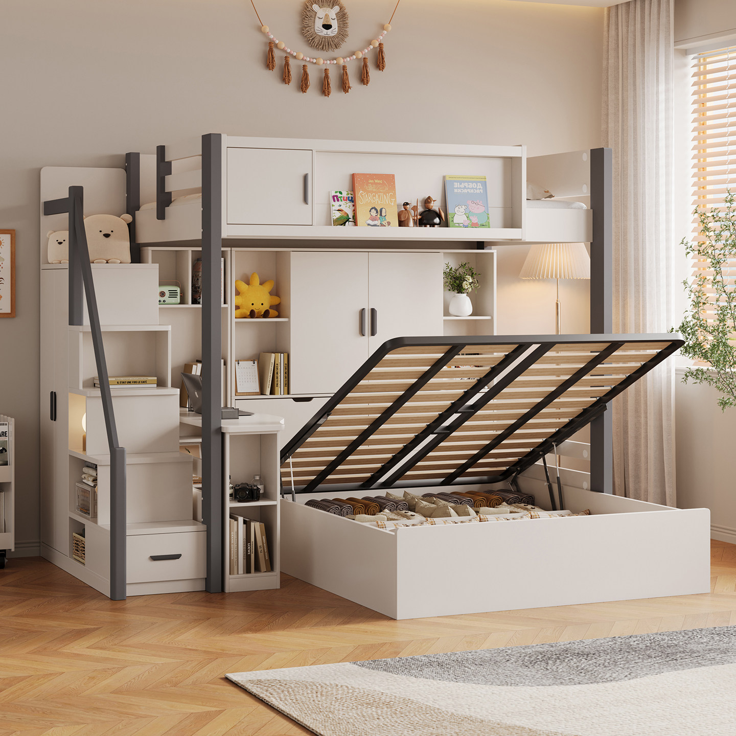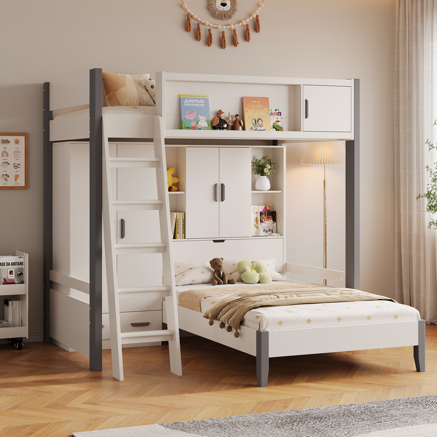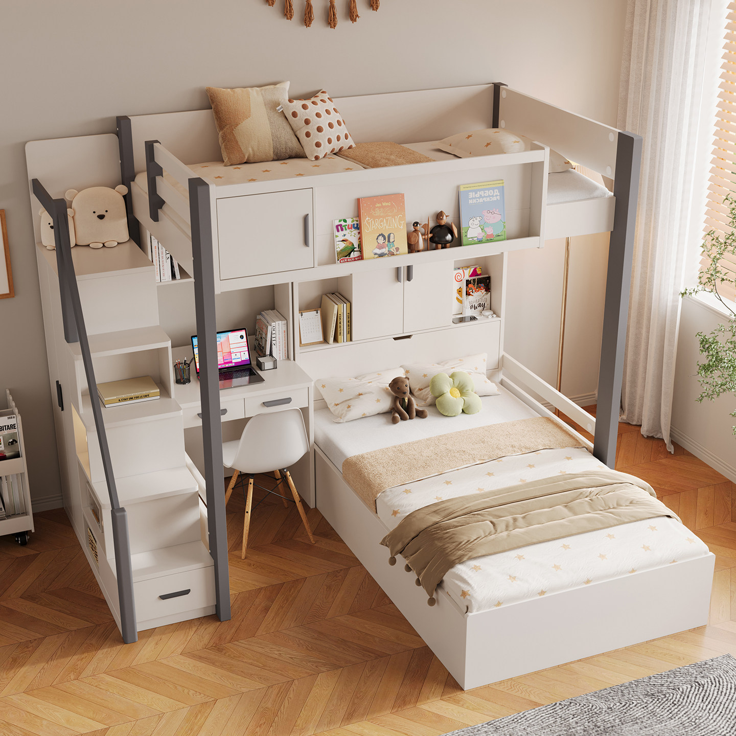 上下铺床交错式多功能上下床儿童高低小户型双层带书桌衣柜子母床