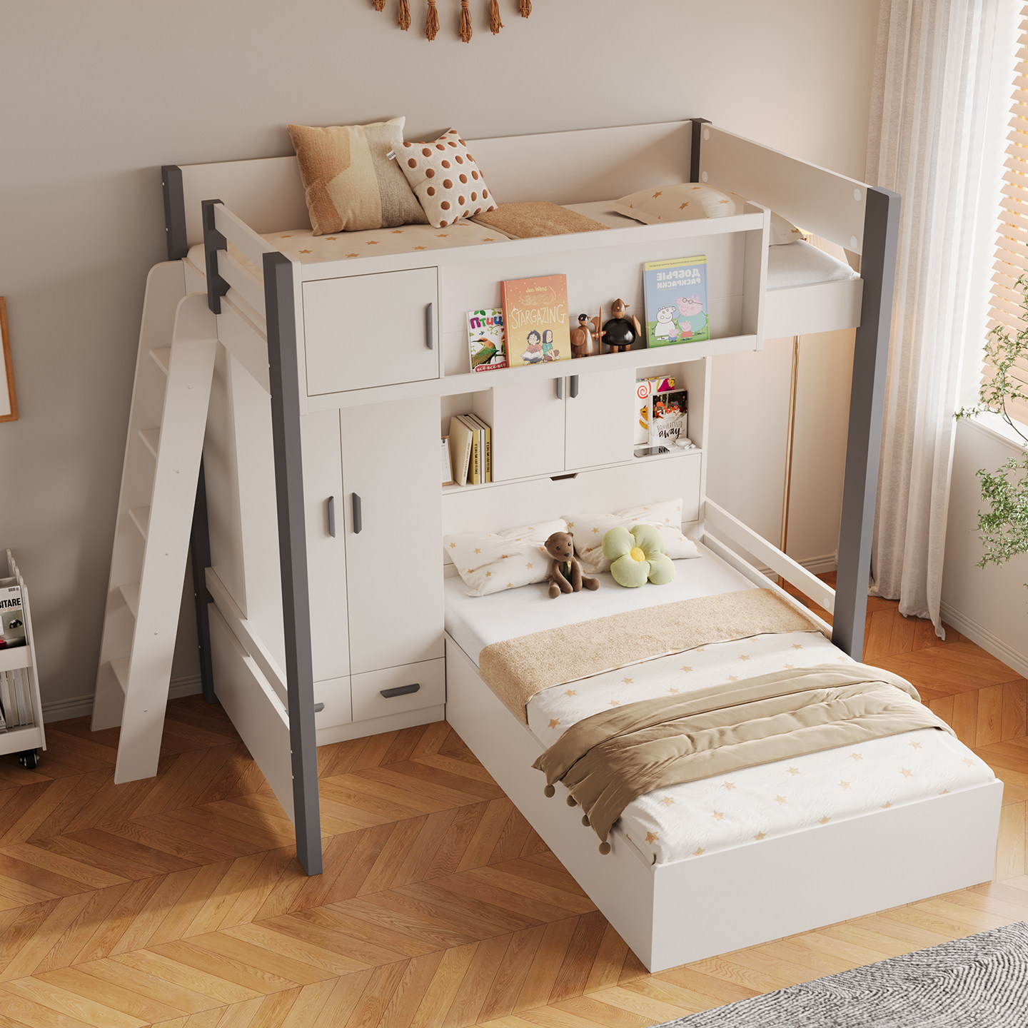 全实木子母床多功能两层双人床儿童上下床简约小户型高低床双层床