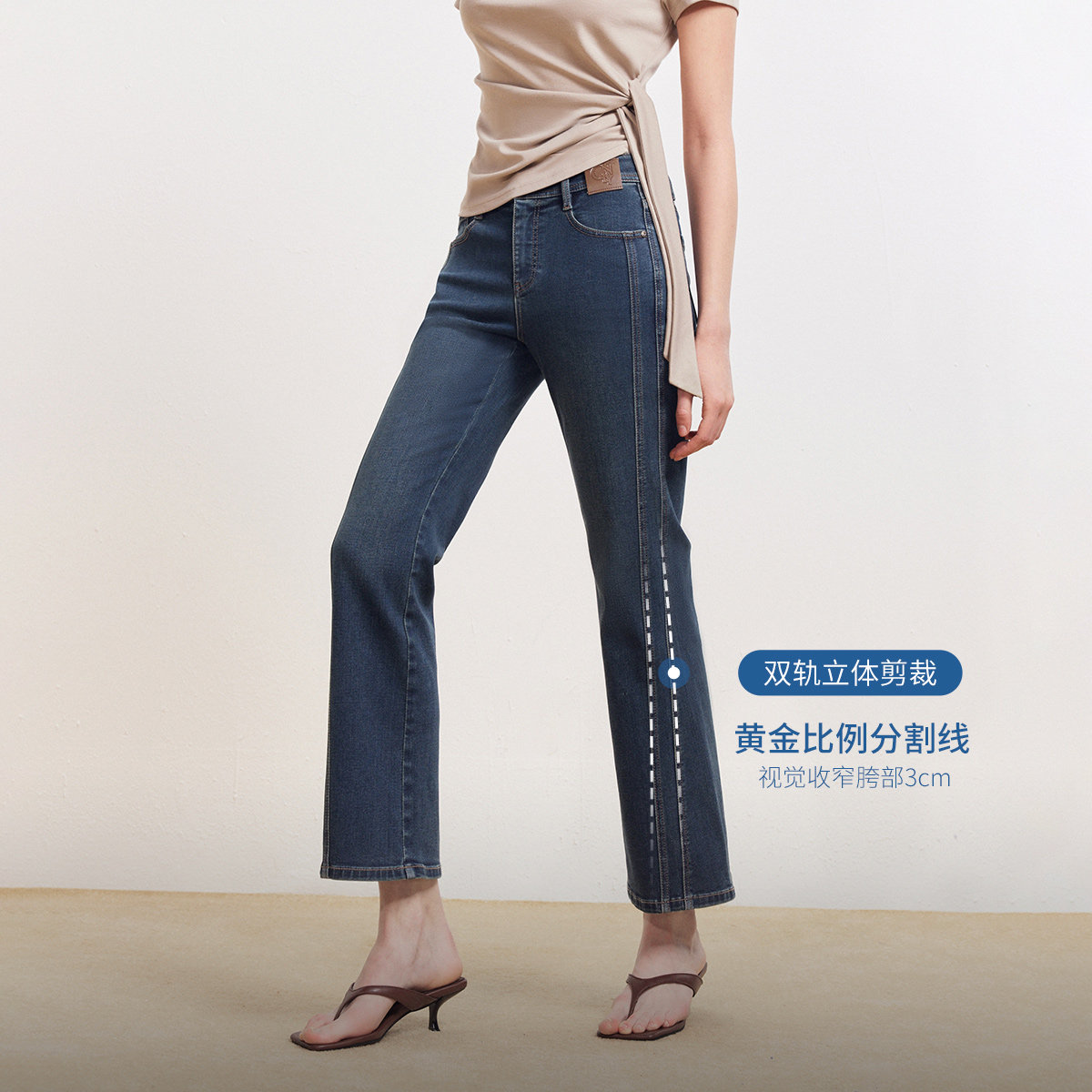 腰头定制装饰皮牌,裤线剪裁修饰腿型