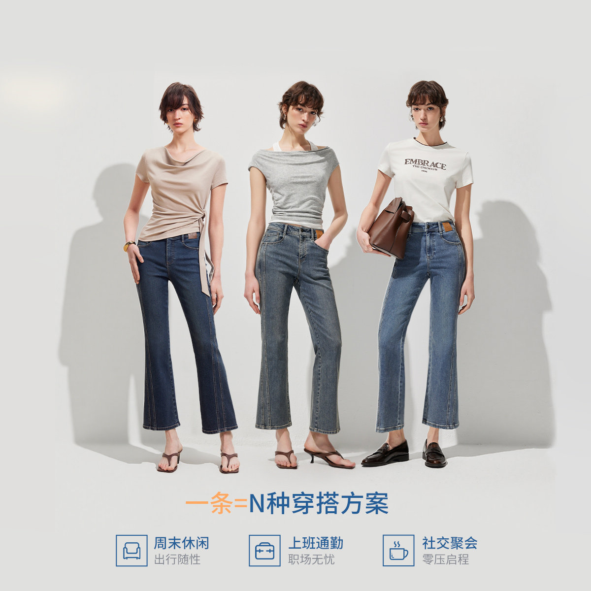 【爆款小个子神裤】ONLY2026春季新款高腰弹力显瘦九分喇叭牛仔裤