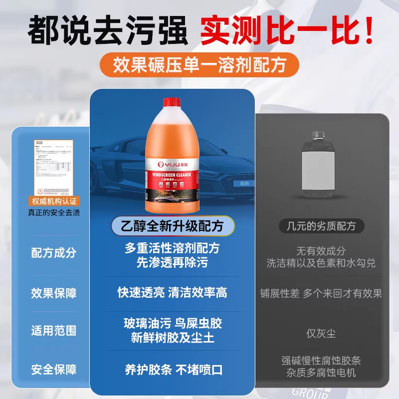 汽车专用乙醇玻璃水四季通用强力去污去油膜防冻清洁雨刮水洗涤液