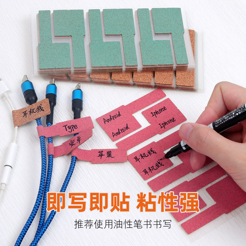 标签贴纸充电线感复防水手写软木材质手古数据线线缆电源线路网线分类收纳钥匙标识空白自粘记号笔贴标签贴