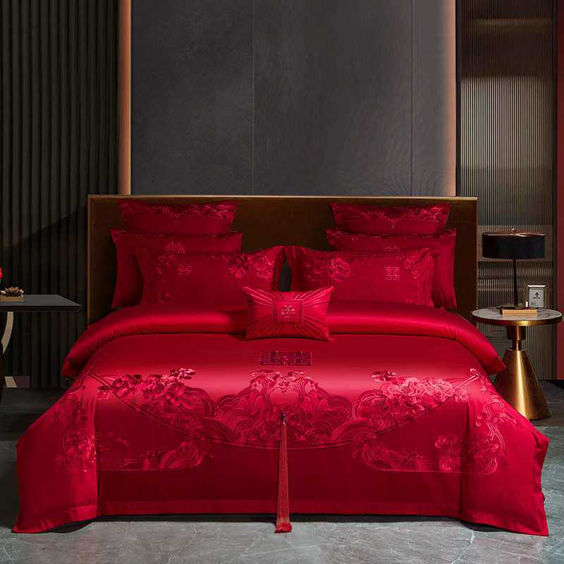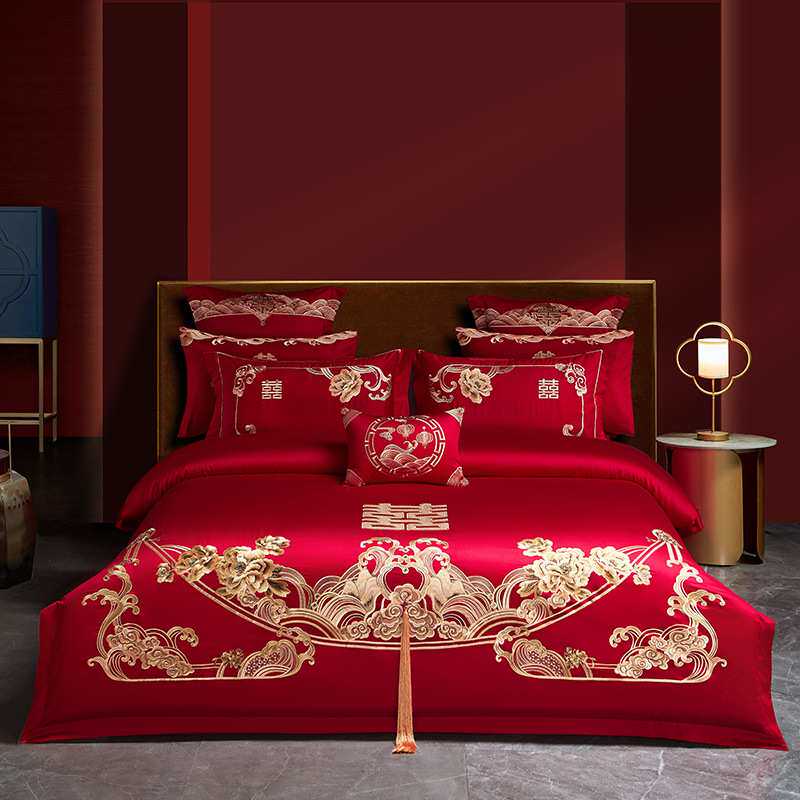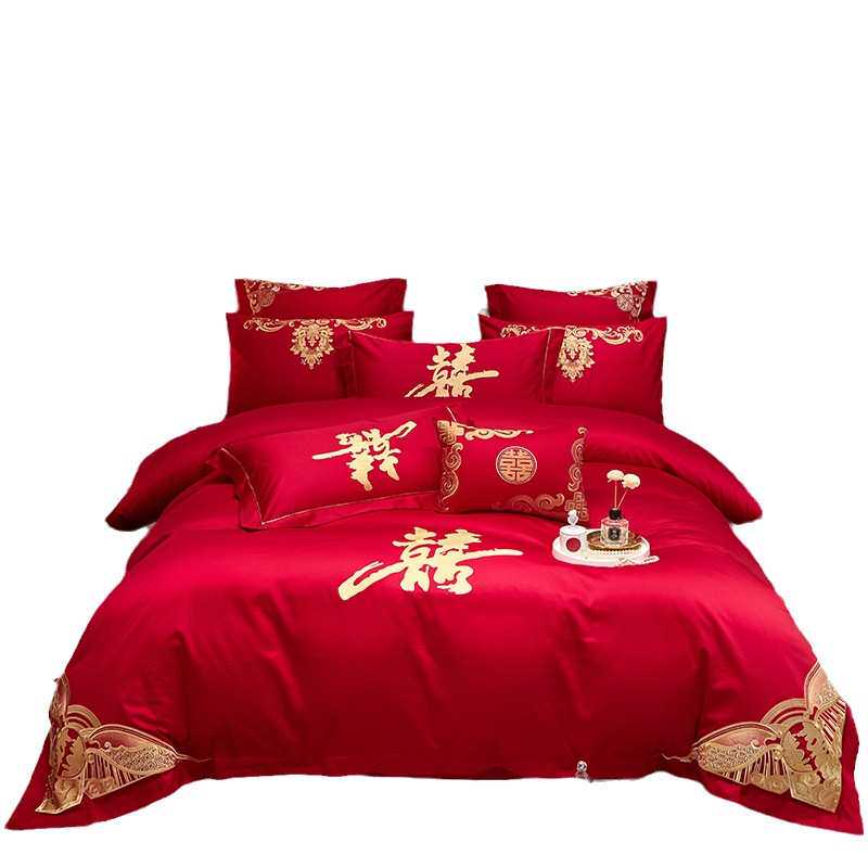全棉婚庆四件套长绒棉结婚套件红刺绣龙凤床上用品多件套锦绣传承