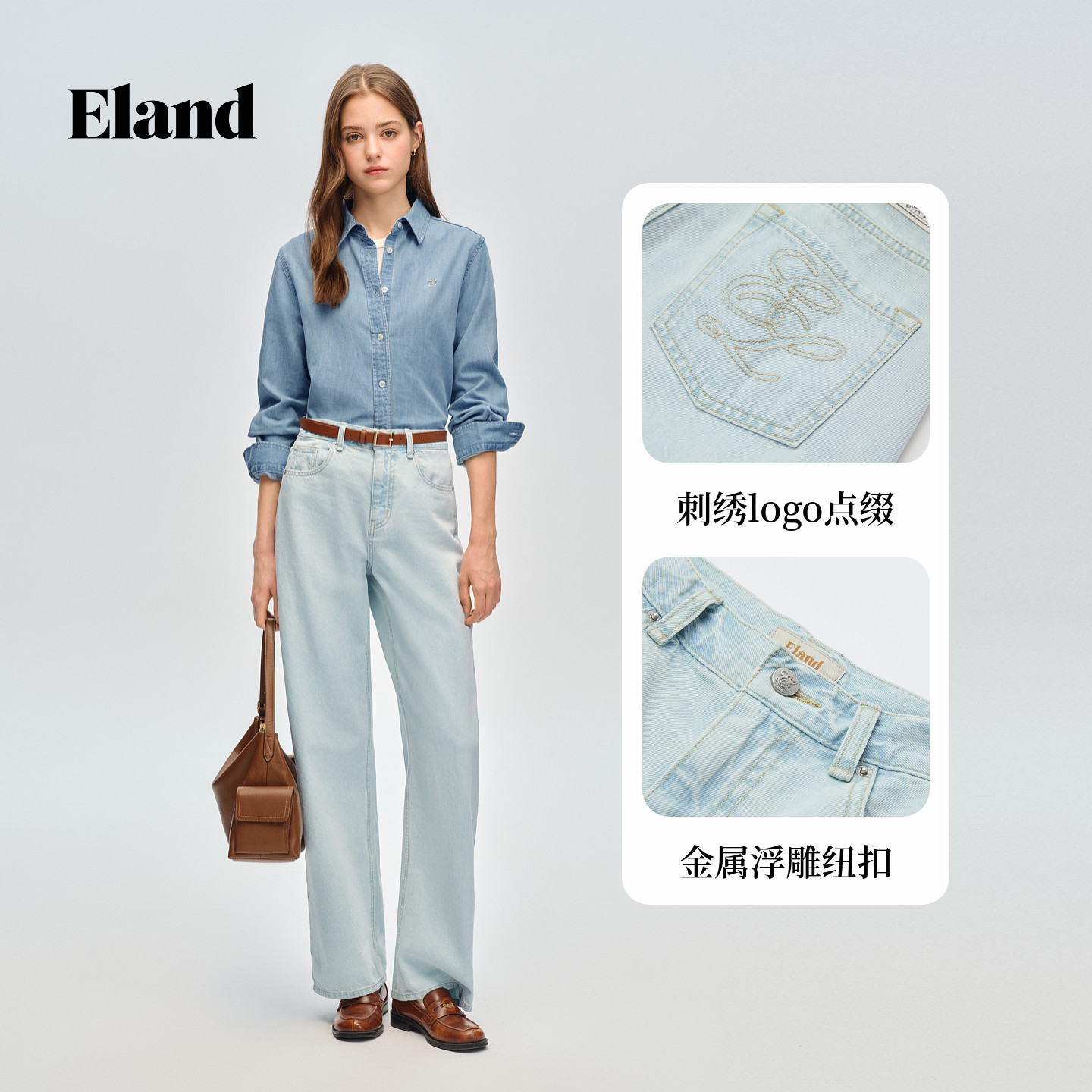 Eland衣恋牛仔裤女松弛感弯刀裤宽松显瘦长裤子2026春季新款
