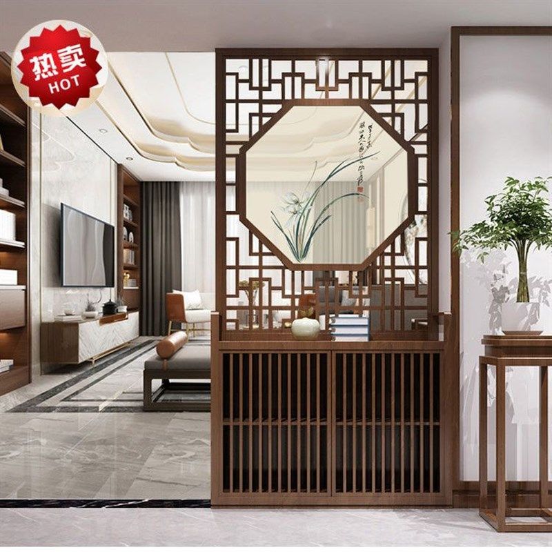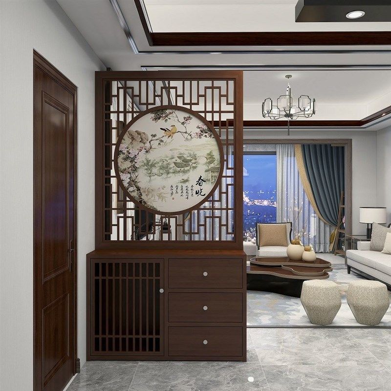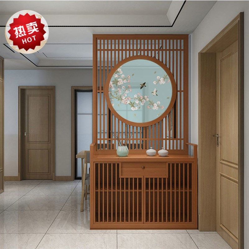 新新中式实木屏风入户玄关隔断柜简约现代座屏门厅柜抽屉鞋柜储物