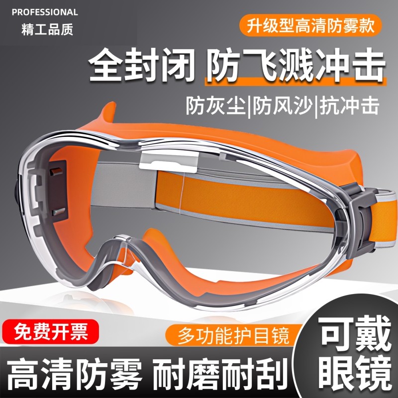 护目镜防飞溅灰尘不起雾可戴眼镜劳保工业切割骑行防风沙护目电焊