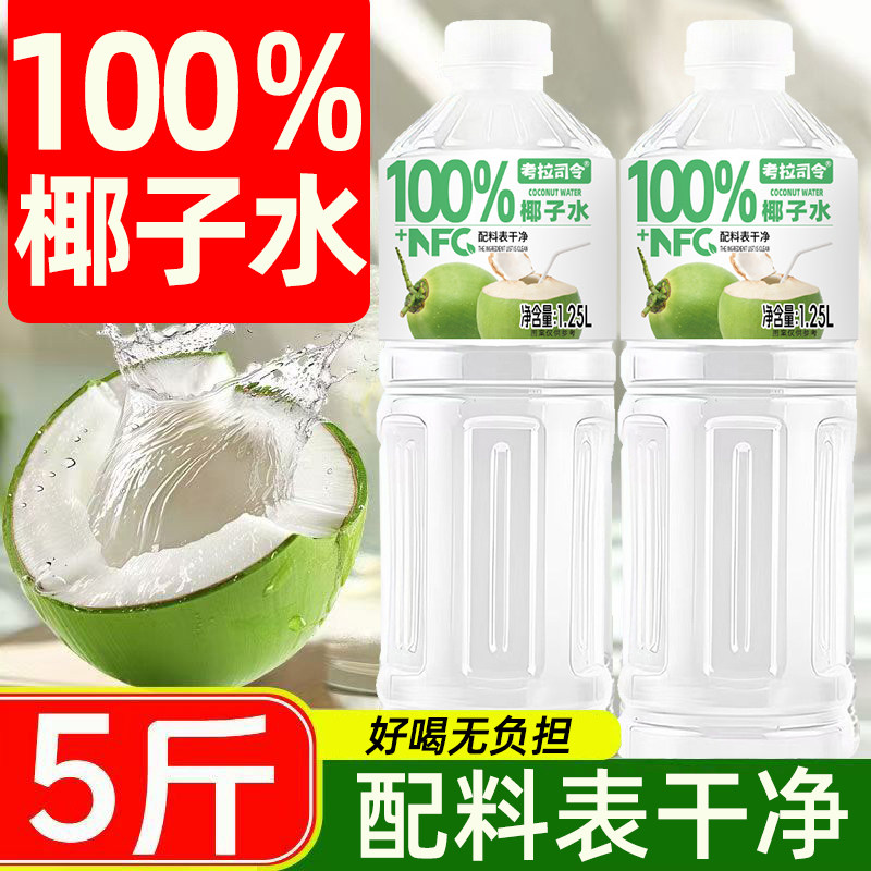 100%椰子水0添加天然椰子果汁饮料夏季清爽饮品2大瓶整箱批发饮料