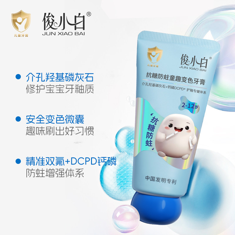 俊小白儿童牙膏2-12岁含氟乳牙换牙期抗糖防蛀羟基磷灰石防龋护齿