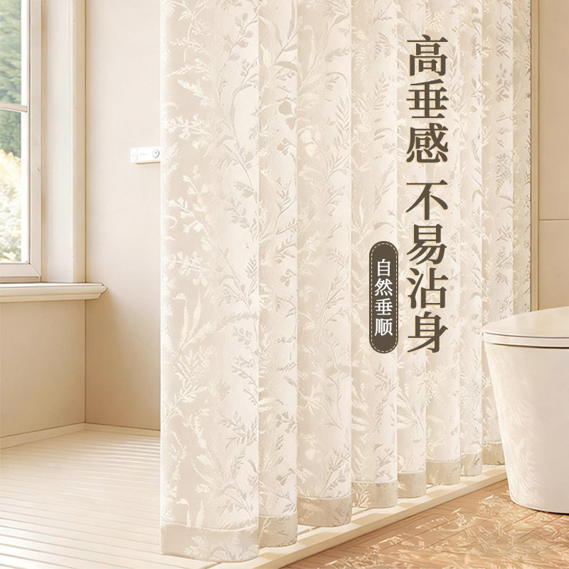 浴室高档浴帘防水防霉干湿分离隔断卫生间免打孔布窗帘纱帘法式