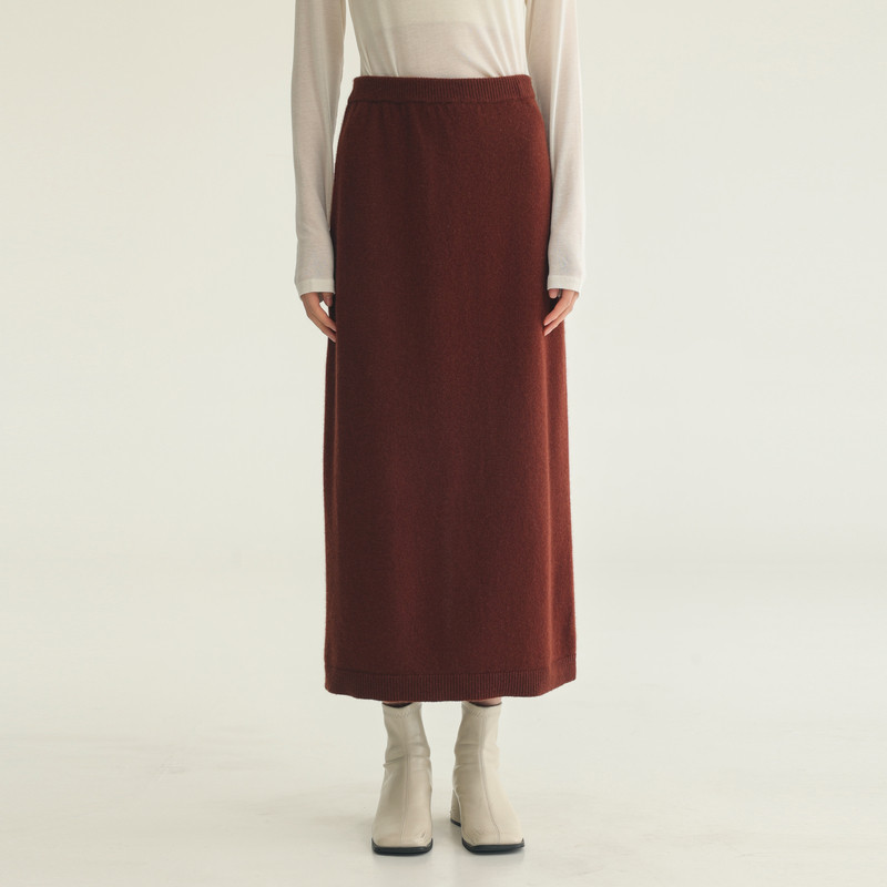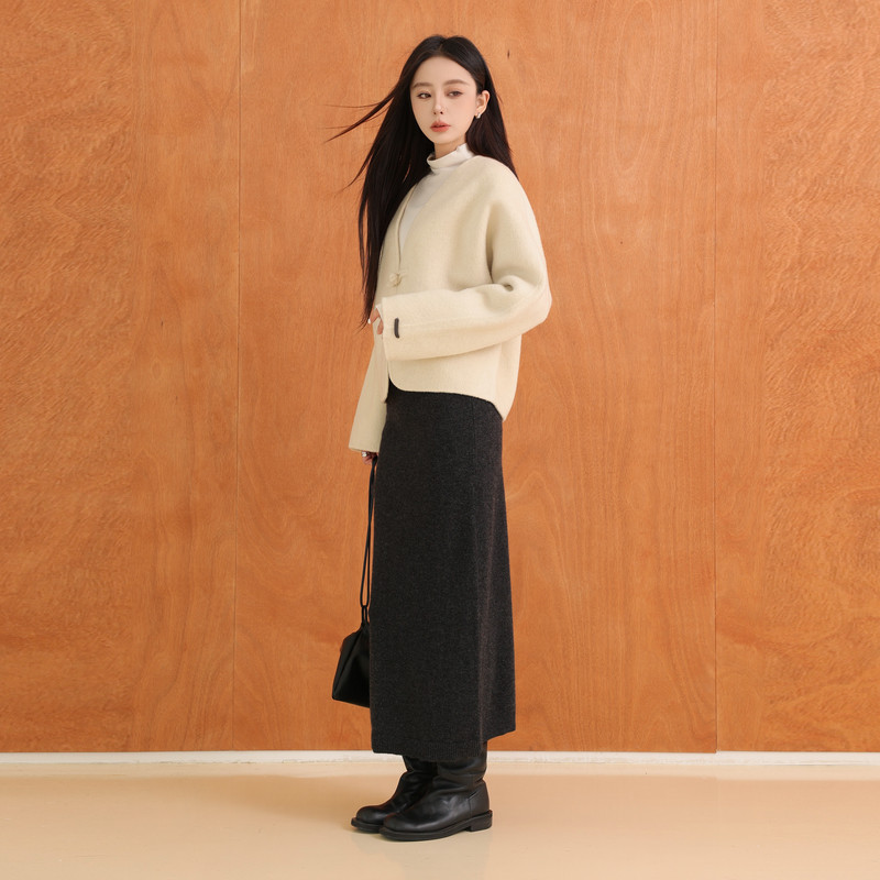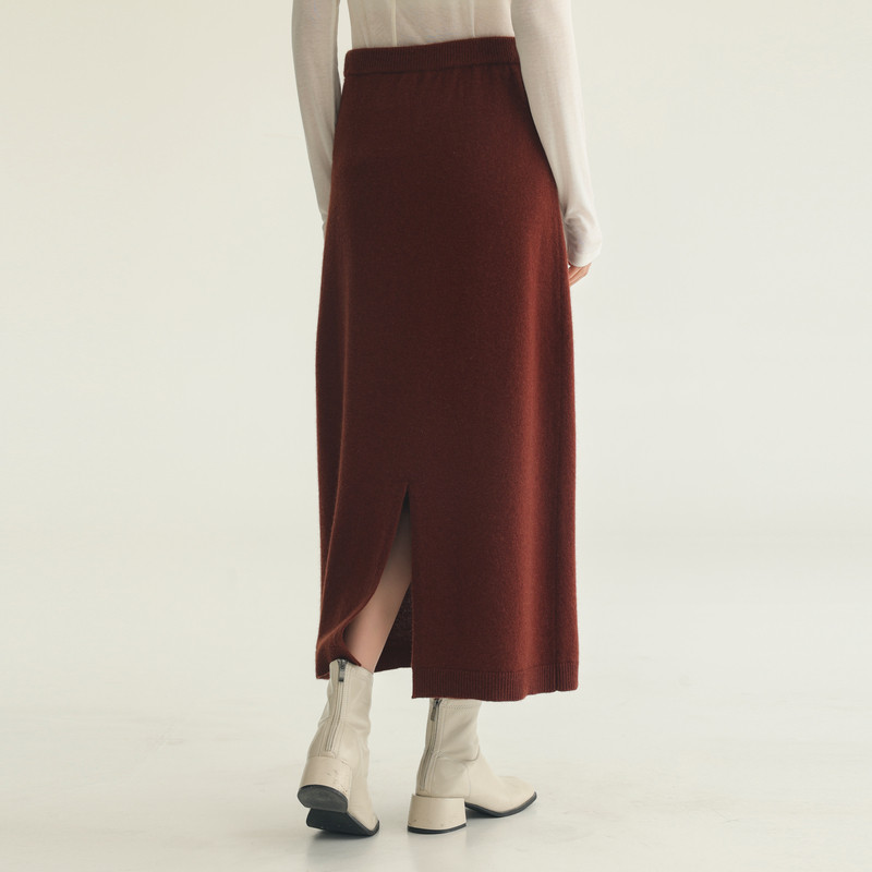 AIRIQI冬季新款复古简约百搭开衩直筒全羊毛针织半身裙AH44BQ594