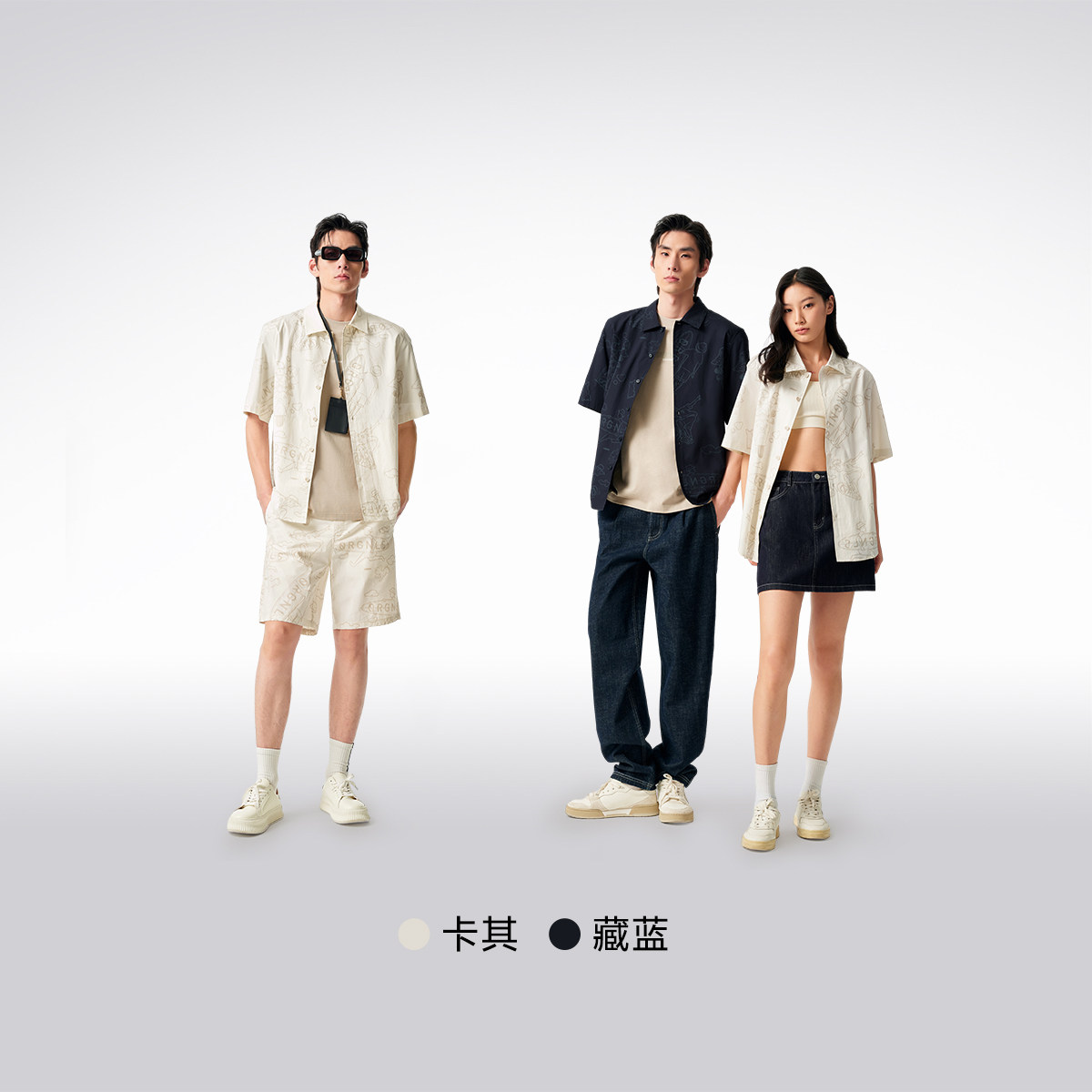 杰克琼斯奥特莱斯户外潮宽松度假满印衬衣情侣款纯棉短袖衬衫男装