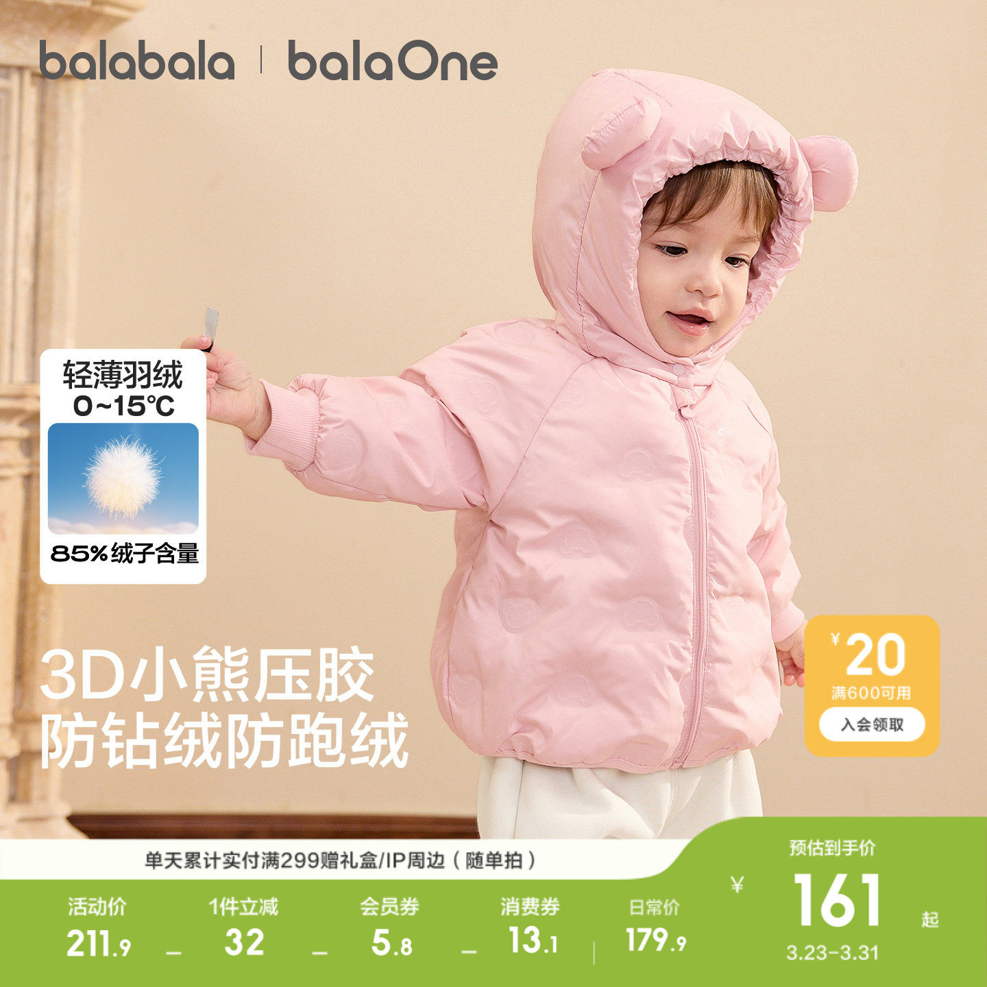 巴拉巴拉童装婴儿轻薄羽绒服男童女童宝宝衣服年新款冬装儿童外套