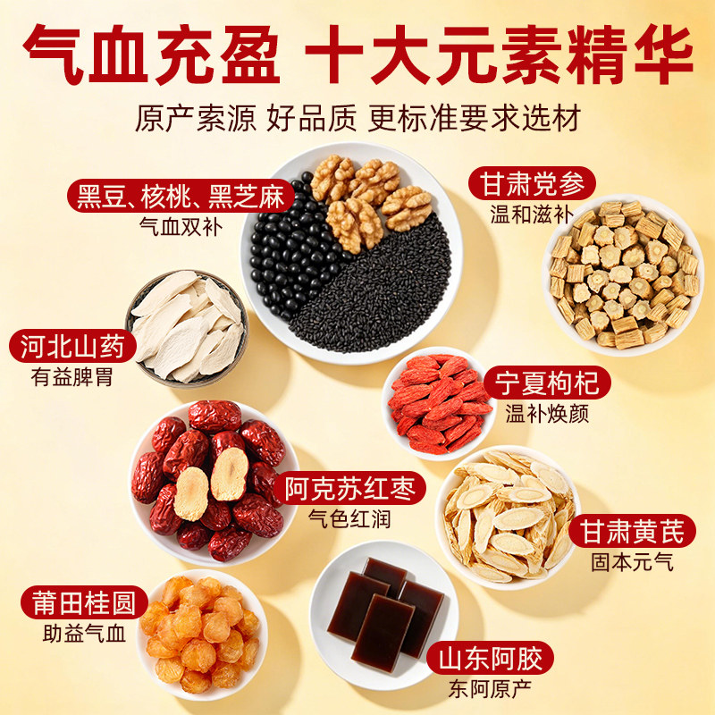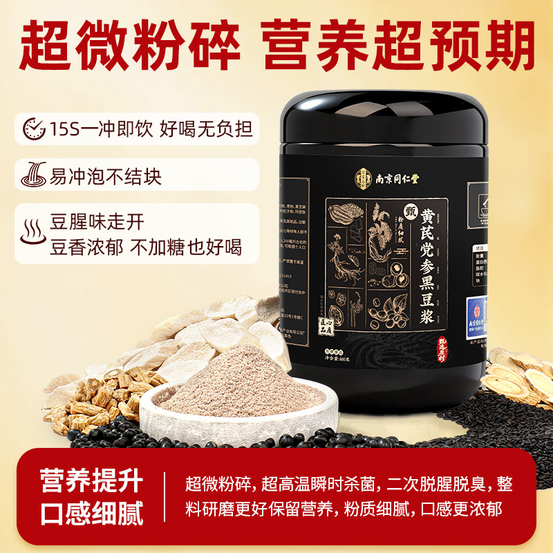 南京同仁堂黄芪党参黑豆浆黑芝麻核桃无糖女生补气血早代餐粉红枣
