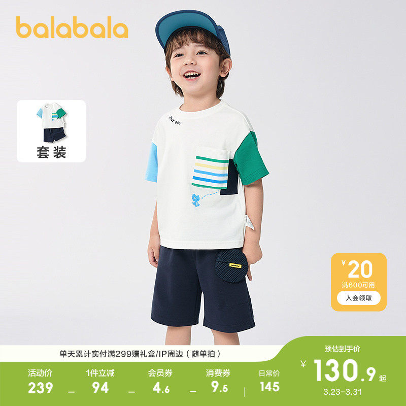 巴拉巴拉儿童短袖套装男童装纯棉两件套2026休闲夏装时尚百搭洋气