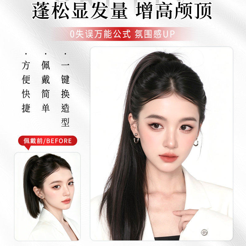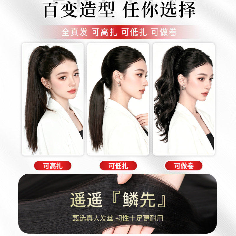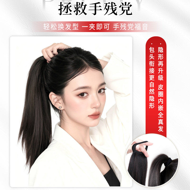 真发高马尾假发辫增发量蓬松可扎低马尾无痕自然长直发皮筋假马尾