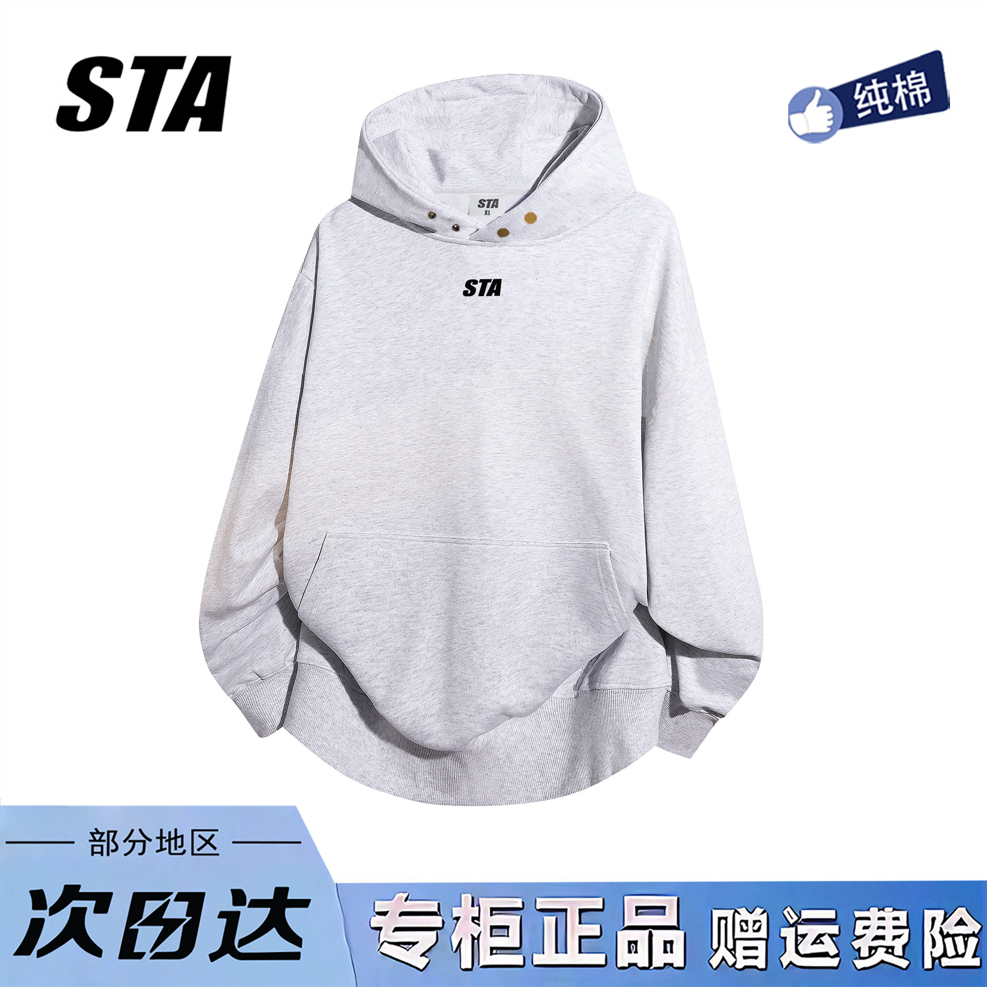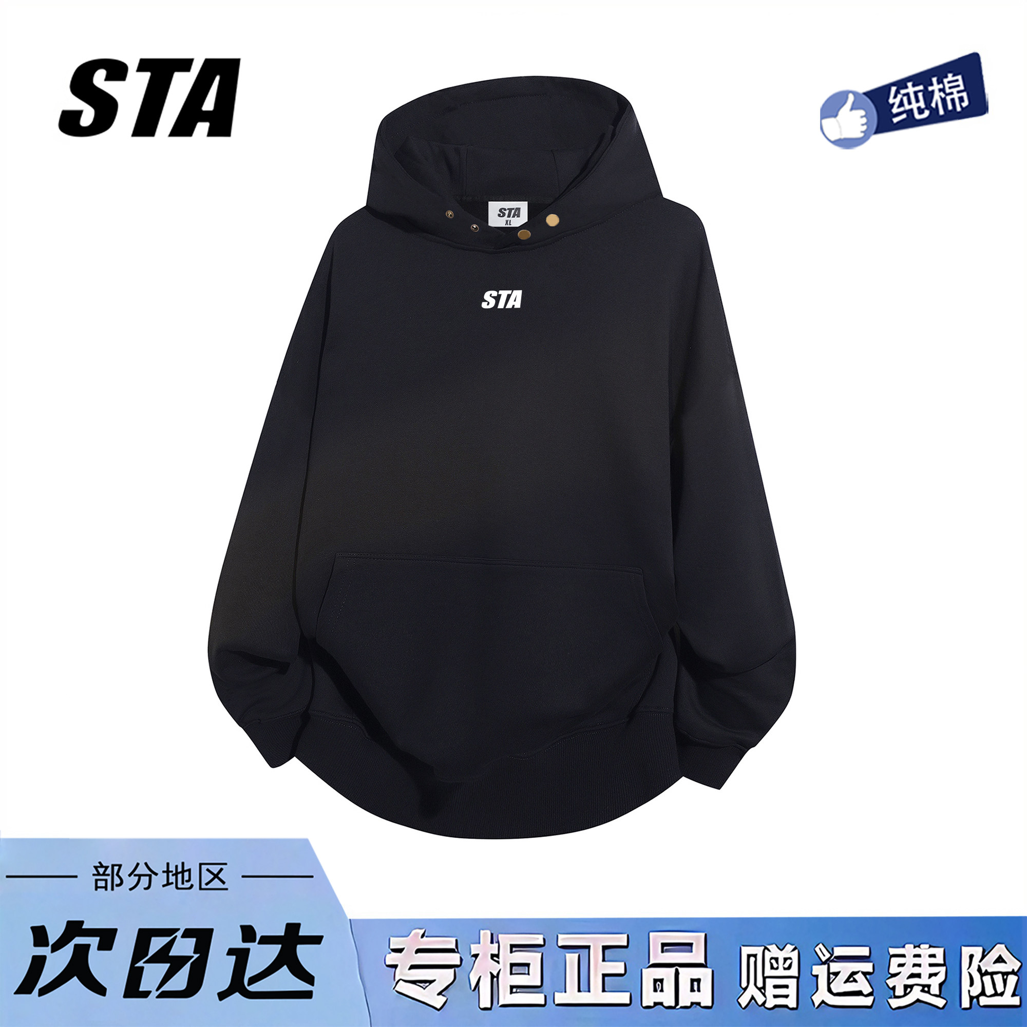 STA旗舰店美式潮牌重磅纯棉小众设计连帽卫衣男女宽松帽衫外套