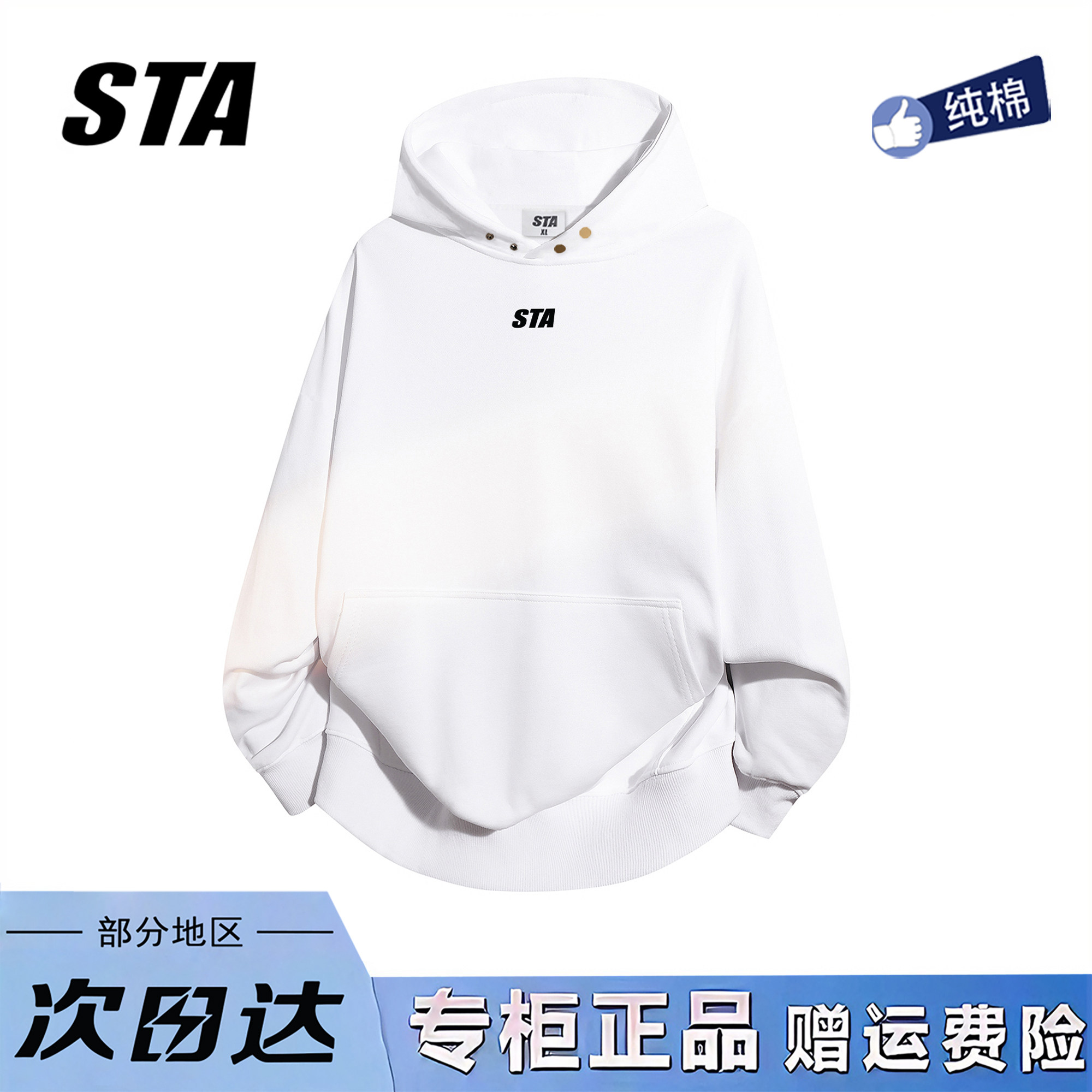 STA旗舰店基础logo字母印花纽扣连帽卫衣男女秋冬季纯棉情侣外套