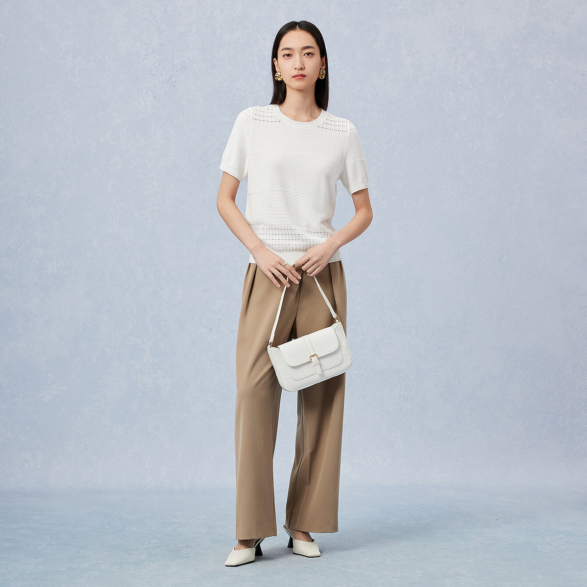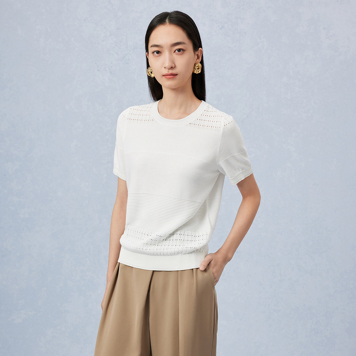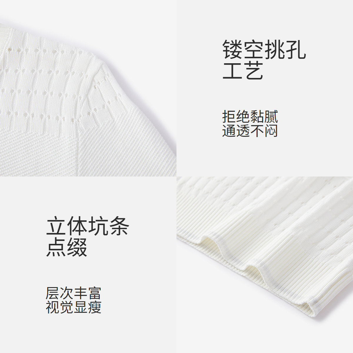 FINITY菲妮迪针织衫2026年春季新款简约白色镂空短袖休闲上衣女装