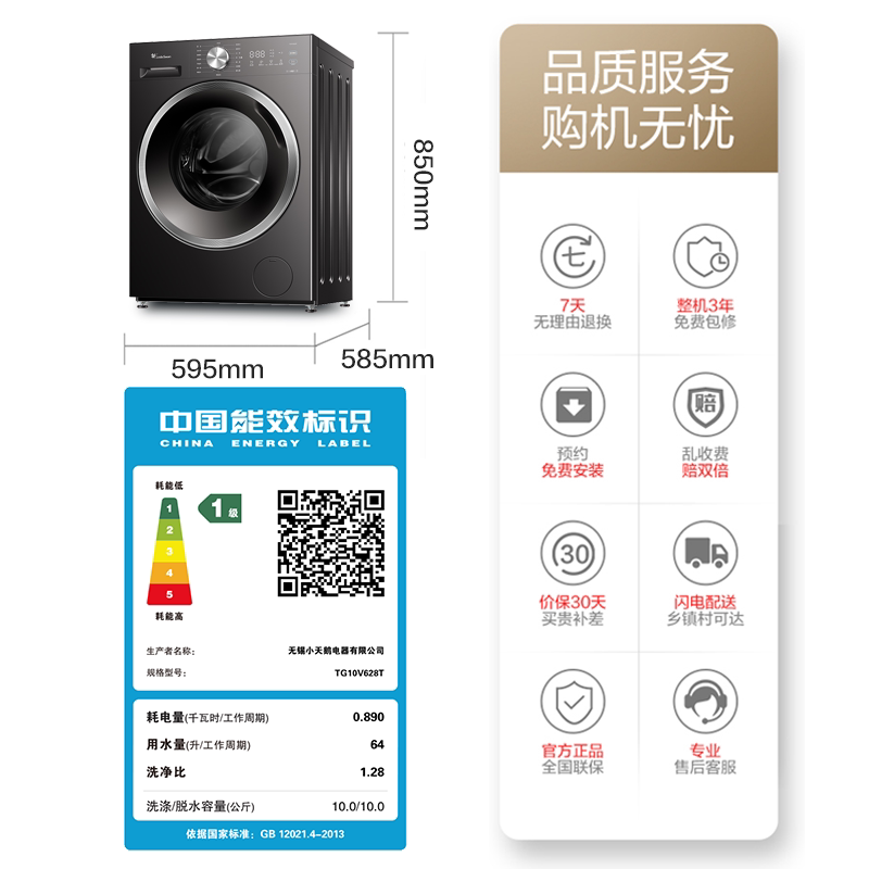 小天鹅滚筒洗衣机新款水魔方全自动10/12公斤家用洗烘一体628T618