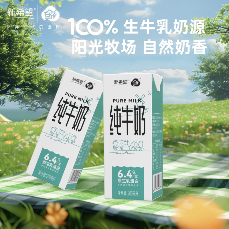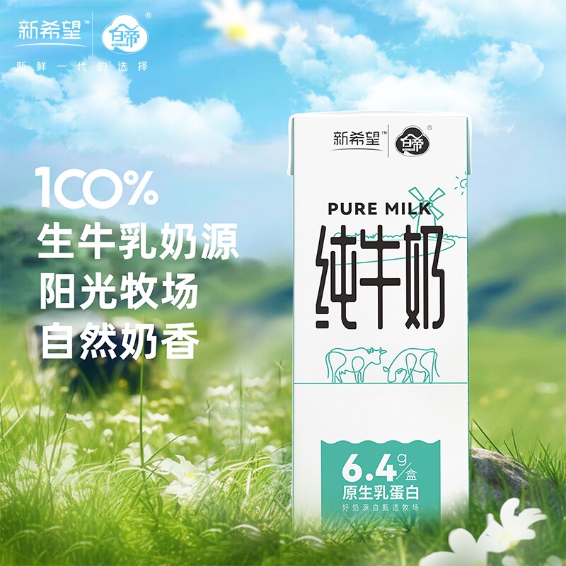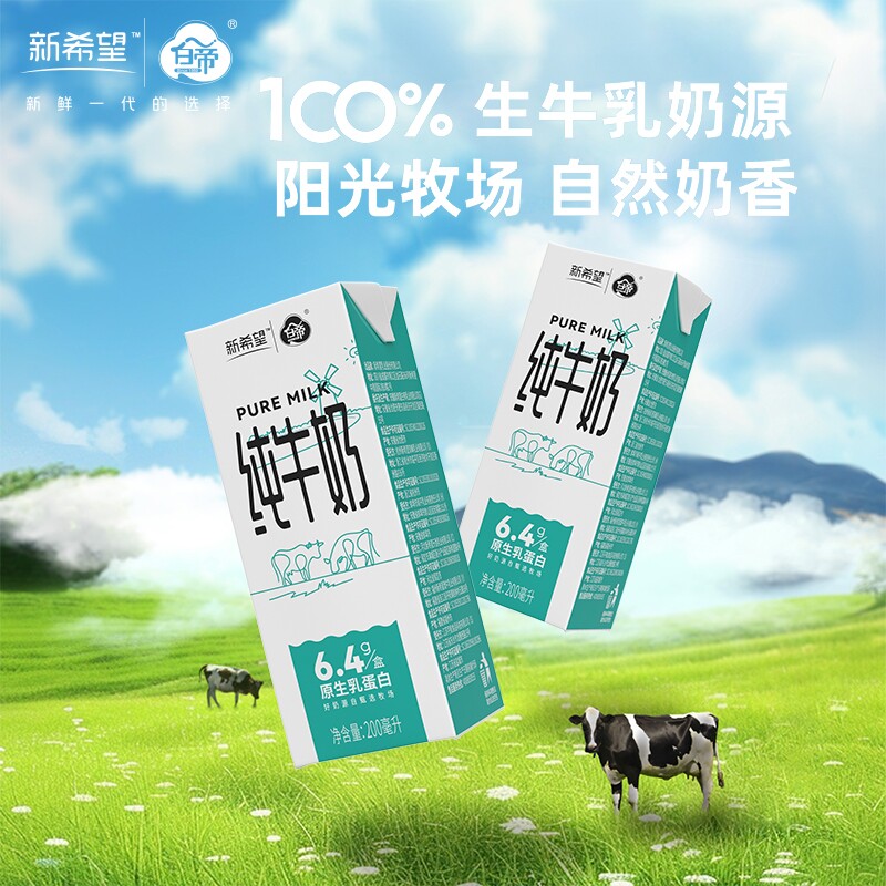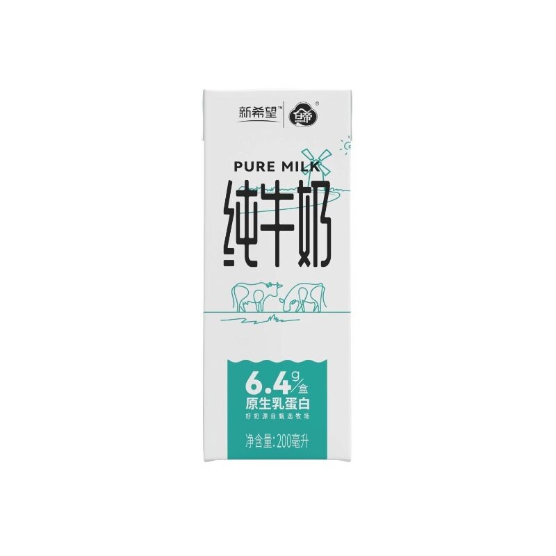 新希望白帝纯牛奶200ml*12盒/箱生牛乳早餐奶原生乳蛋白家庭装