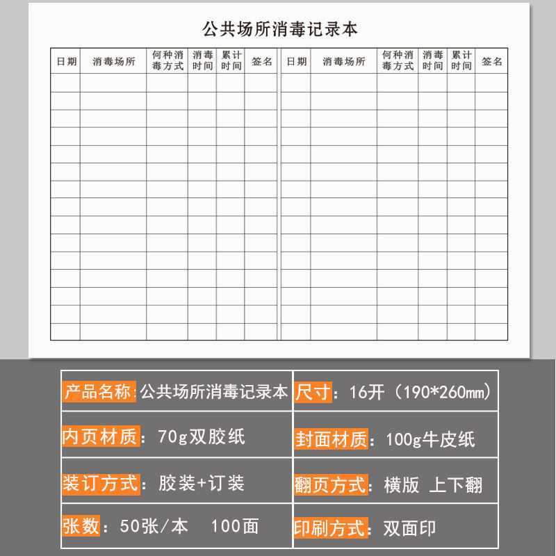 公共场所消毒记录本用具物体表面清洗消毒记录本场所消毒记录本册