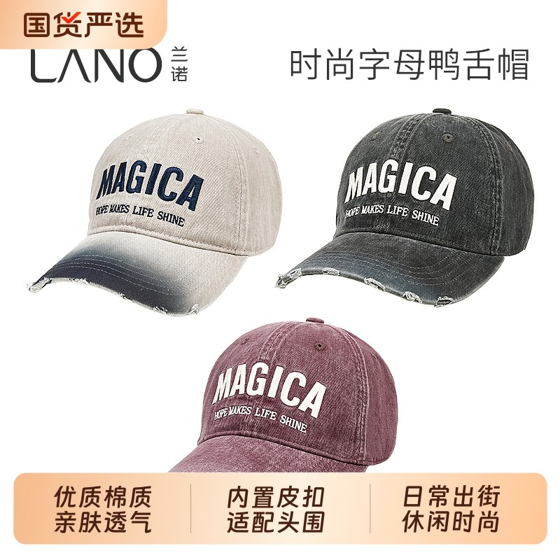 兰诺纯棉字母棒球帽女2025秋季新款硬顶鸭舌帽子红色黑色紫色休闲