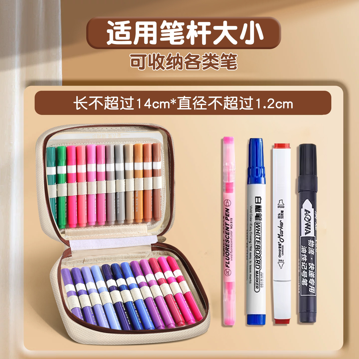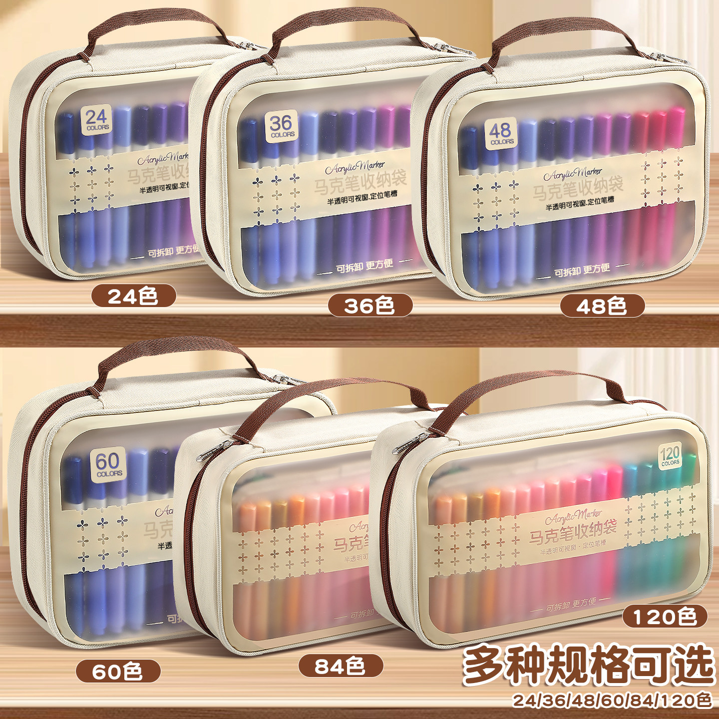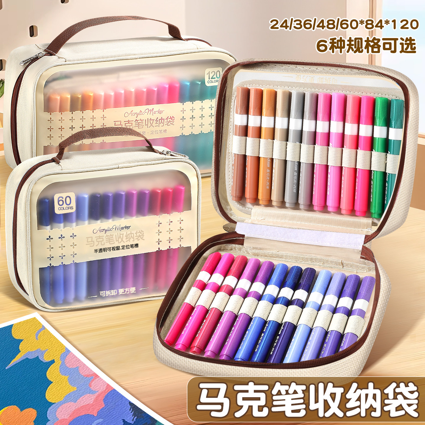 120色马克笔收纳包手提大容量84色丙烯马克笔收纳袋多层可拆卸学生美术彩色画笔记号笔收纳盒透明多功能笔袋