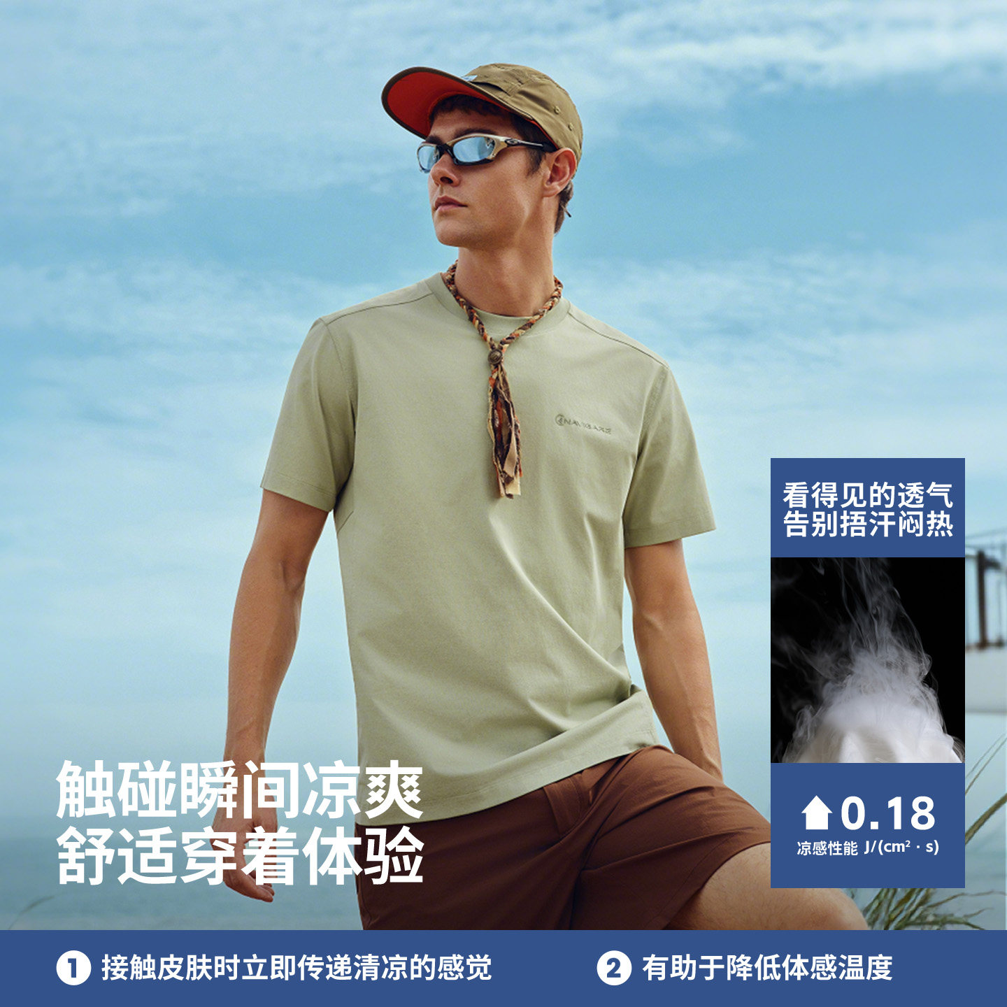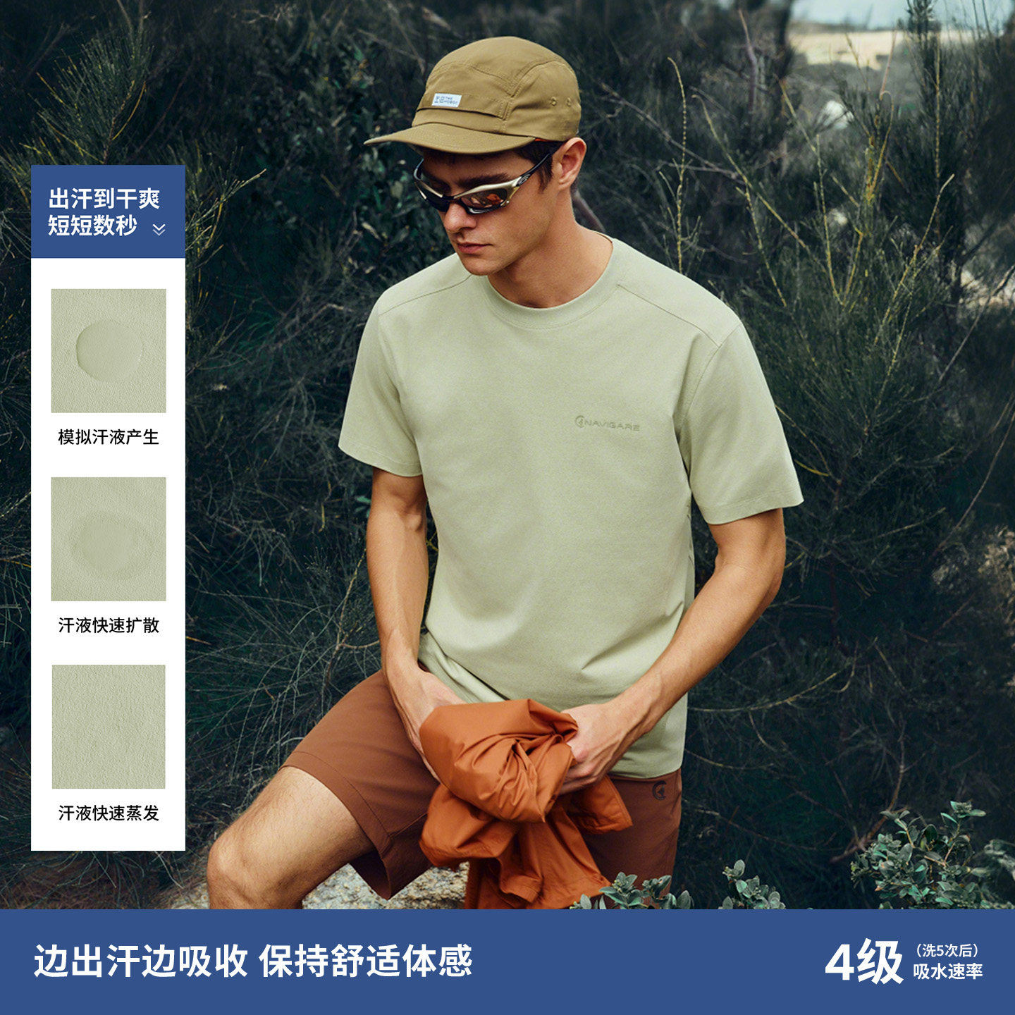 Navigare意大利小帆船夏季速干短袖T恤男2026新款户外圆领体恤衫