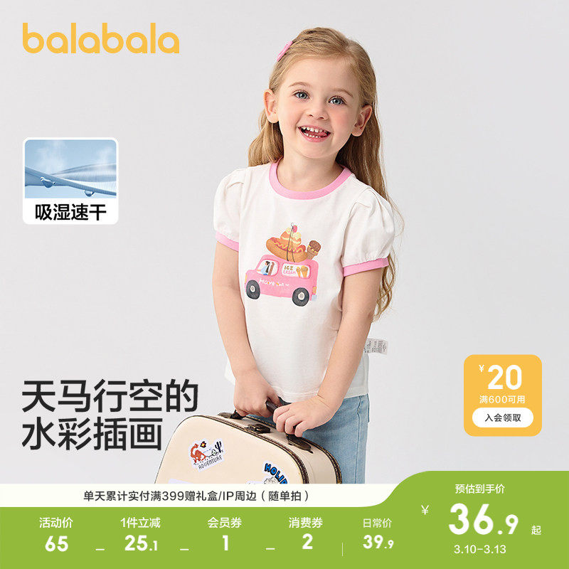 巴拉巴拉童装女童短袖T恤宝宝儿童纯棉上衣轻薄新款春夏装泡泡袖