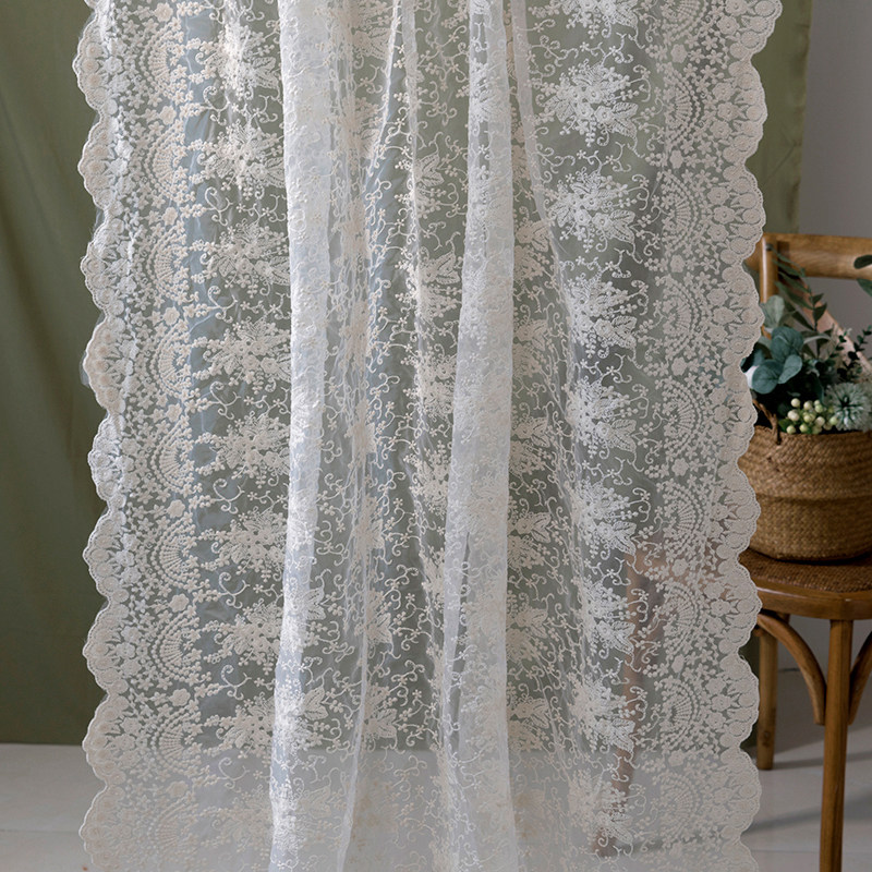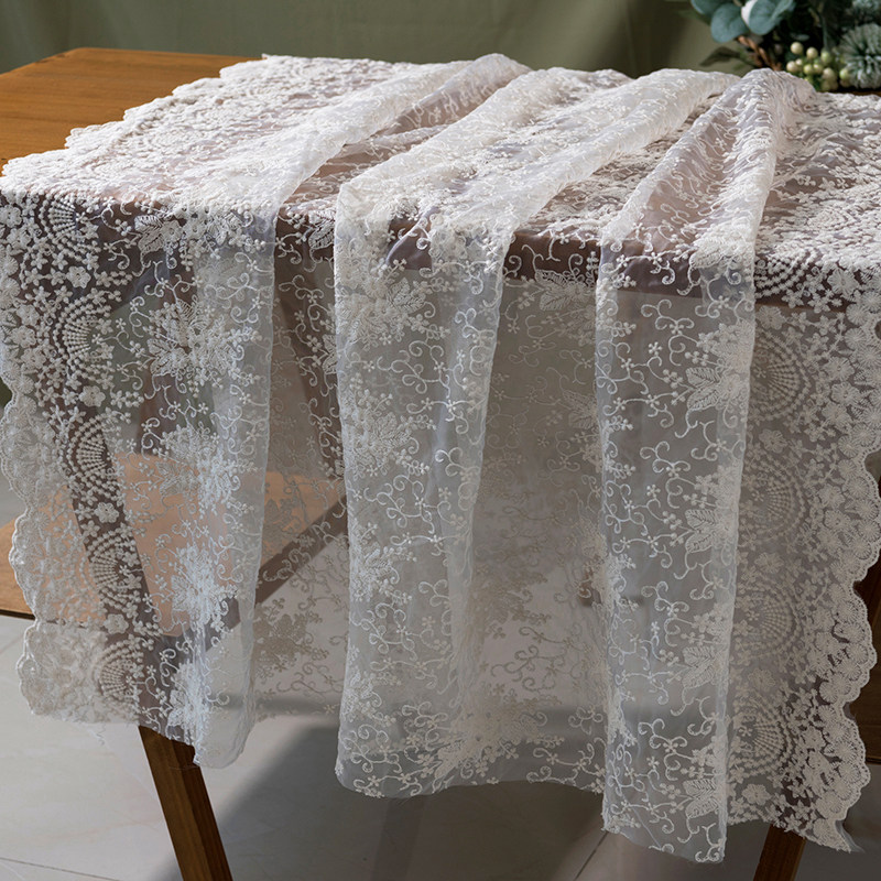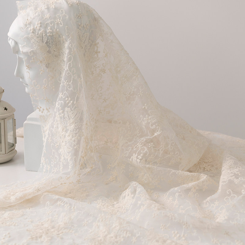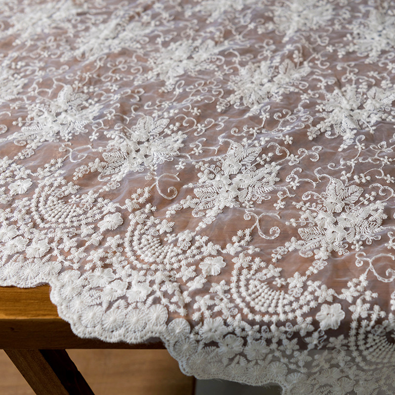 半米价米白色棉线刺绣蕾丝网纱面料 摄影背景布拍照道具装饰搭配