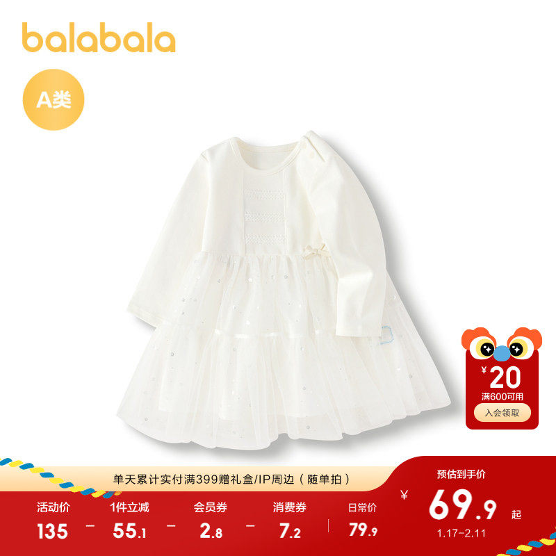 巴拉巴拉balaOne童装女公主裙2025秋冬新款儿童连衣裙针织网纱裙