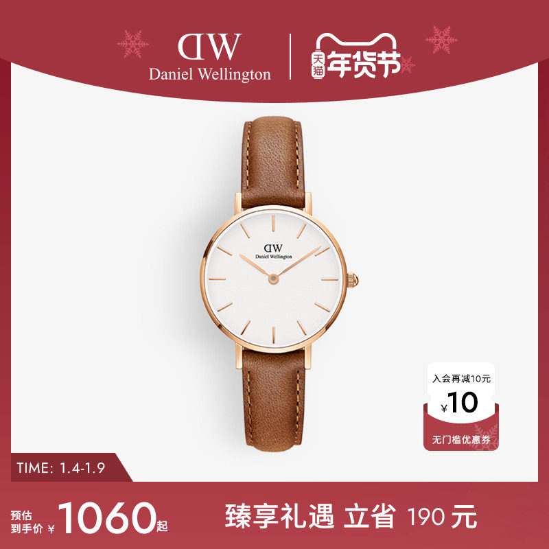 【新年礼物】DW手表女款 PETITE皮质玫瑰金色石英表轻奢腕表28MM