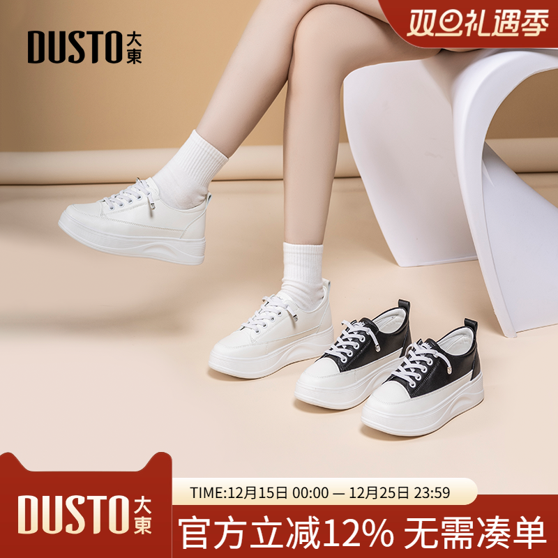 大东小白鞋女鞋2025秋季新款时尚休闲简约平底系带中跟圆头Q0352