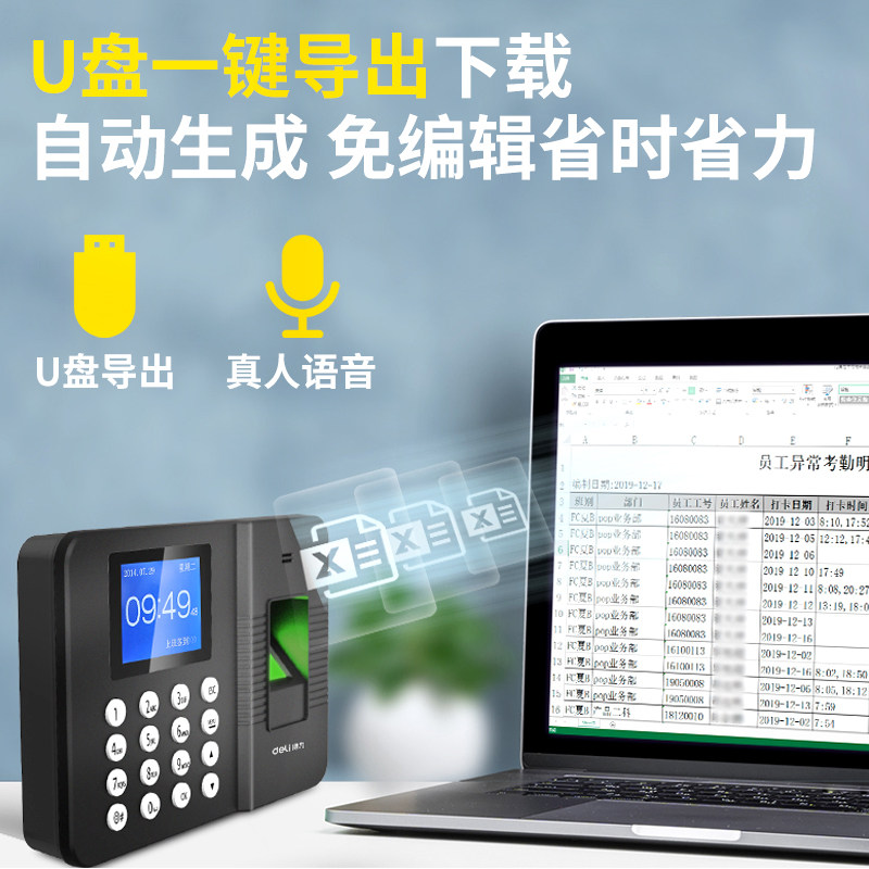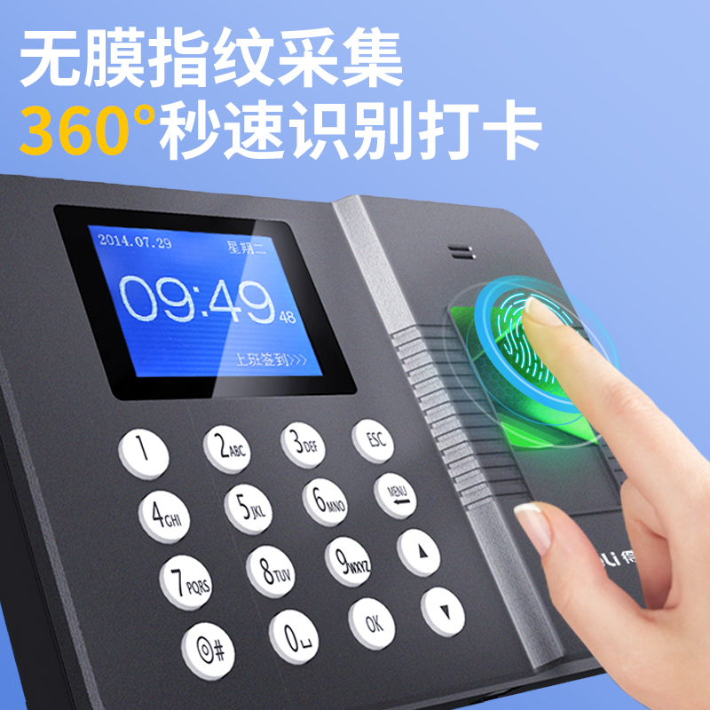 得力3960指纹考勤机上下班打卡机deli指纹识别器员工打卡指纹采集仪指纹密码混合打卡器免软件公司食堂签到机