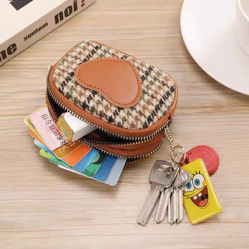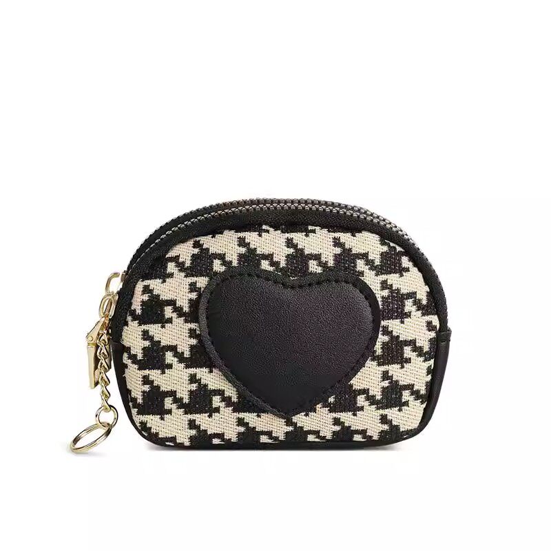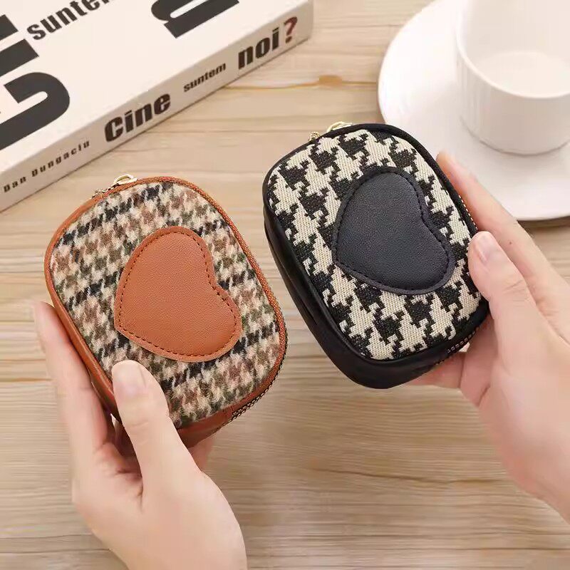 千鸟格帆布零钱包女日韩小众设计可爱迷你拉链钥匙硬币零钱包一体