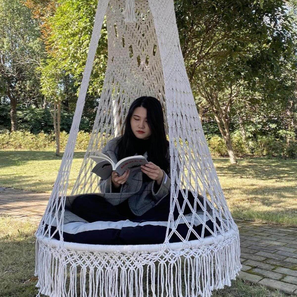 。手工编织绳编波西米亚户外吊椅吊床吊篮阳台庭院秋千花园民宿