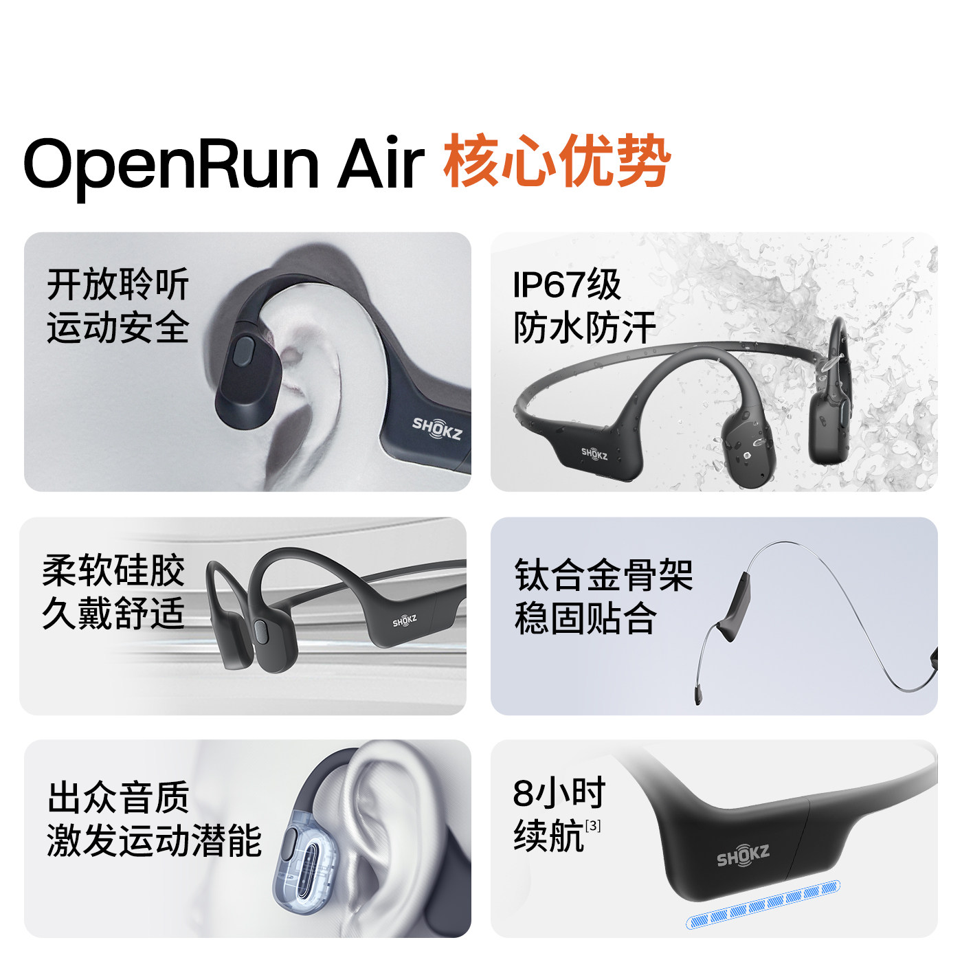 Shokz韶音OpenRun Air骨传导跑步蓝牙运动耳机无线不入耳骑行健身